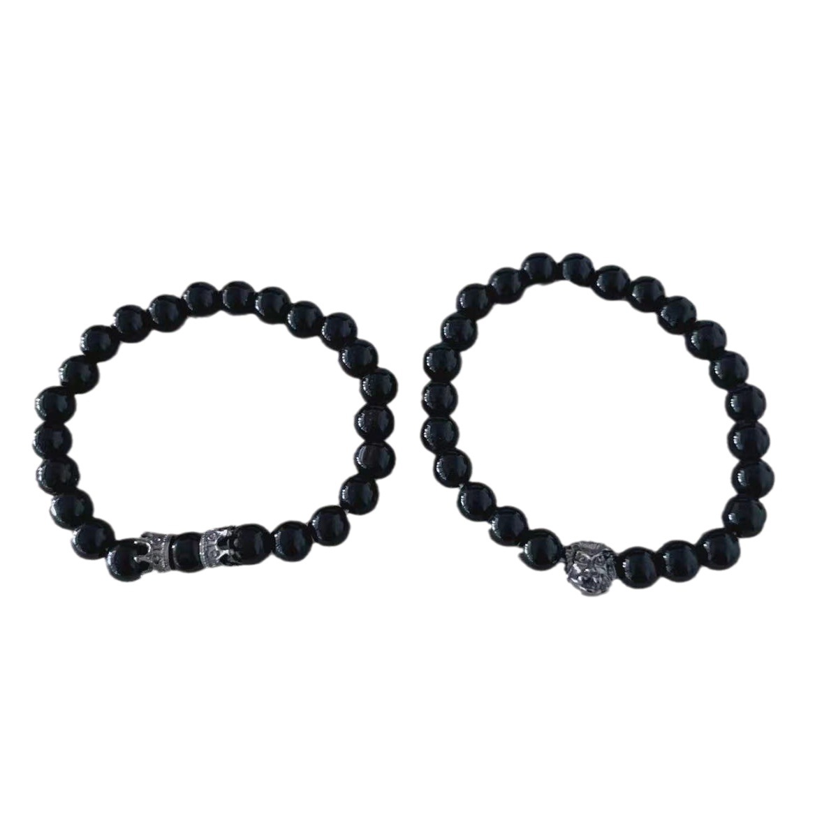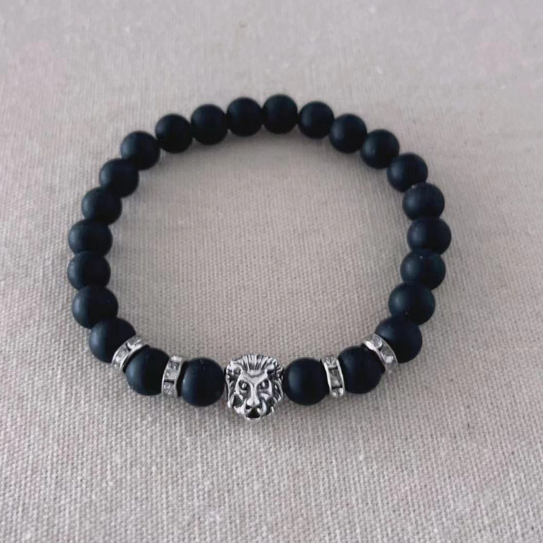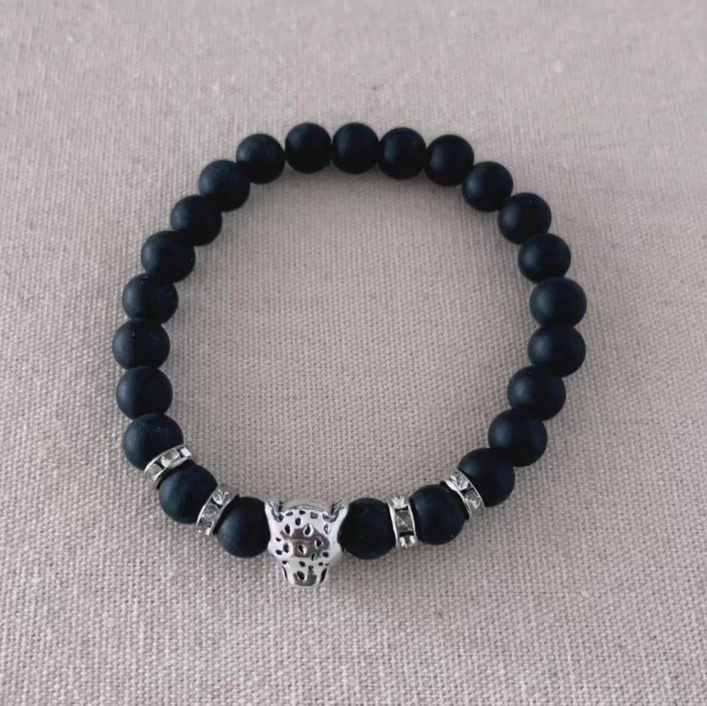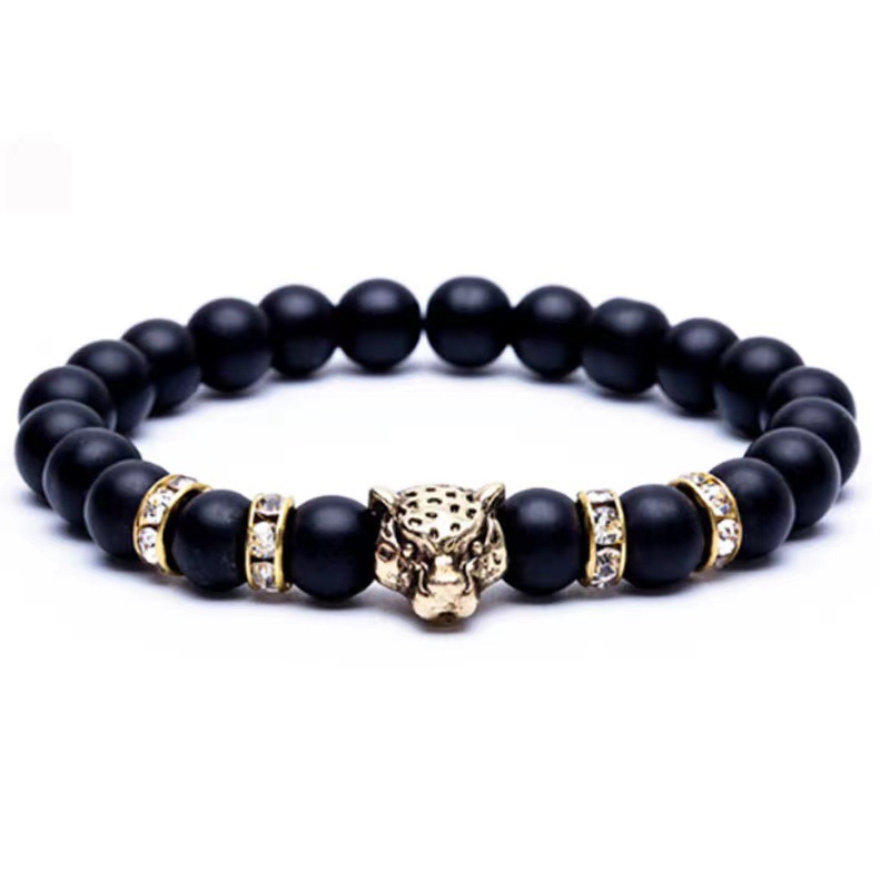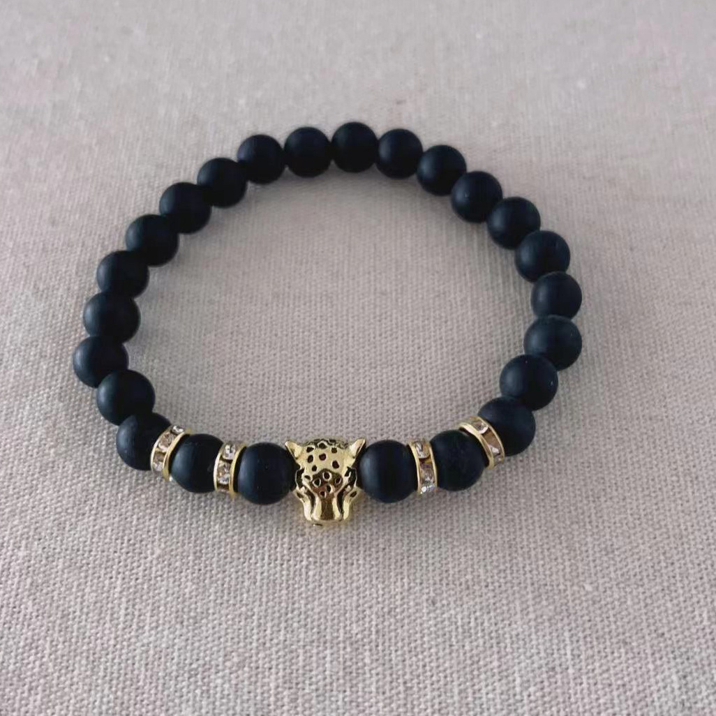 | nameOriginal | Cross-border new hot sale 8mm black frosted stone ancient golden silver leopard head lion men and women elastic bracelet wholesale |