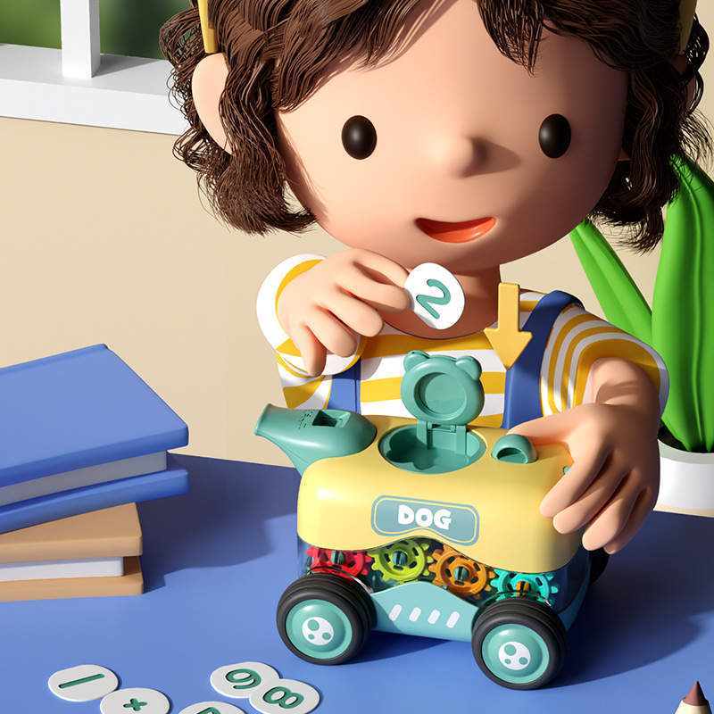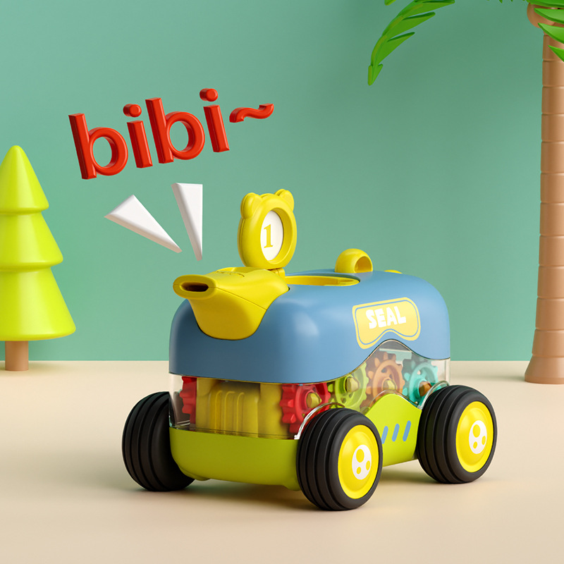 Cross-border new inertial cartoon toy gear car with whistle baby crawling interactive toy drop-resistant factory wholesale