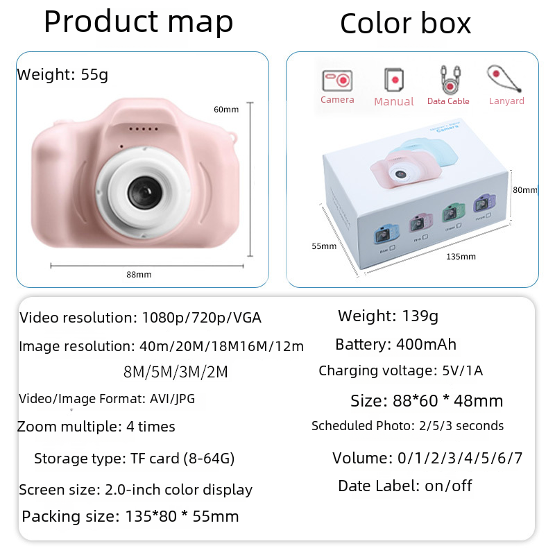 | nameOriginal | Cross-border New kids cameras Children's Camera Digital Cartoon Mini Small SLR Sports Camera Toy |