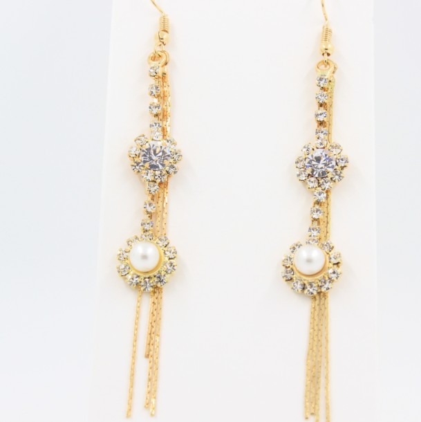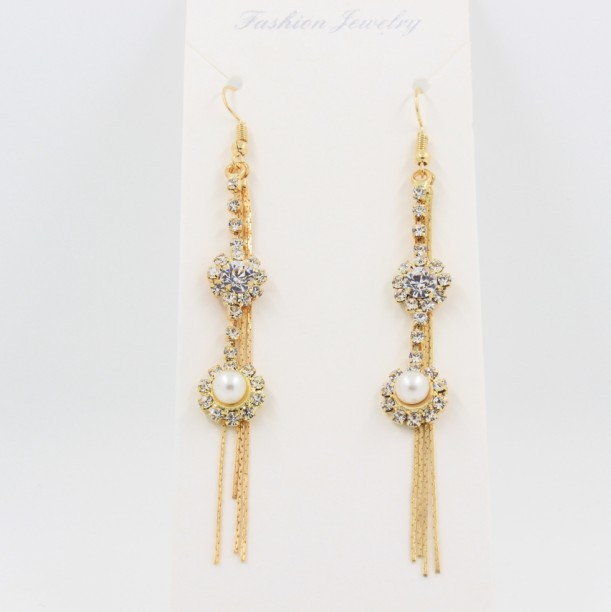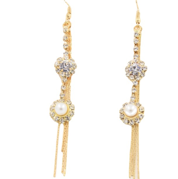 | nameOriginal | Cross-border new Korean fashion jewelry Direct Sales New Pearl flowers rhinestone tassel earrings wholesale |