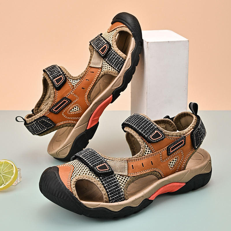 Cross-border New Large Size Summer Men’s Casual Fashion Sandals Breathable Mesh Anti-collision Toe Outdoor Beach Shoes