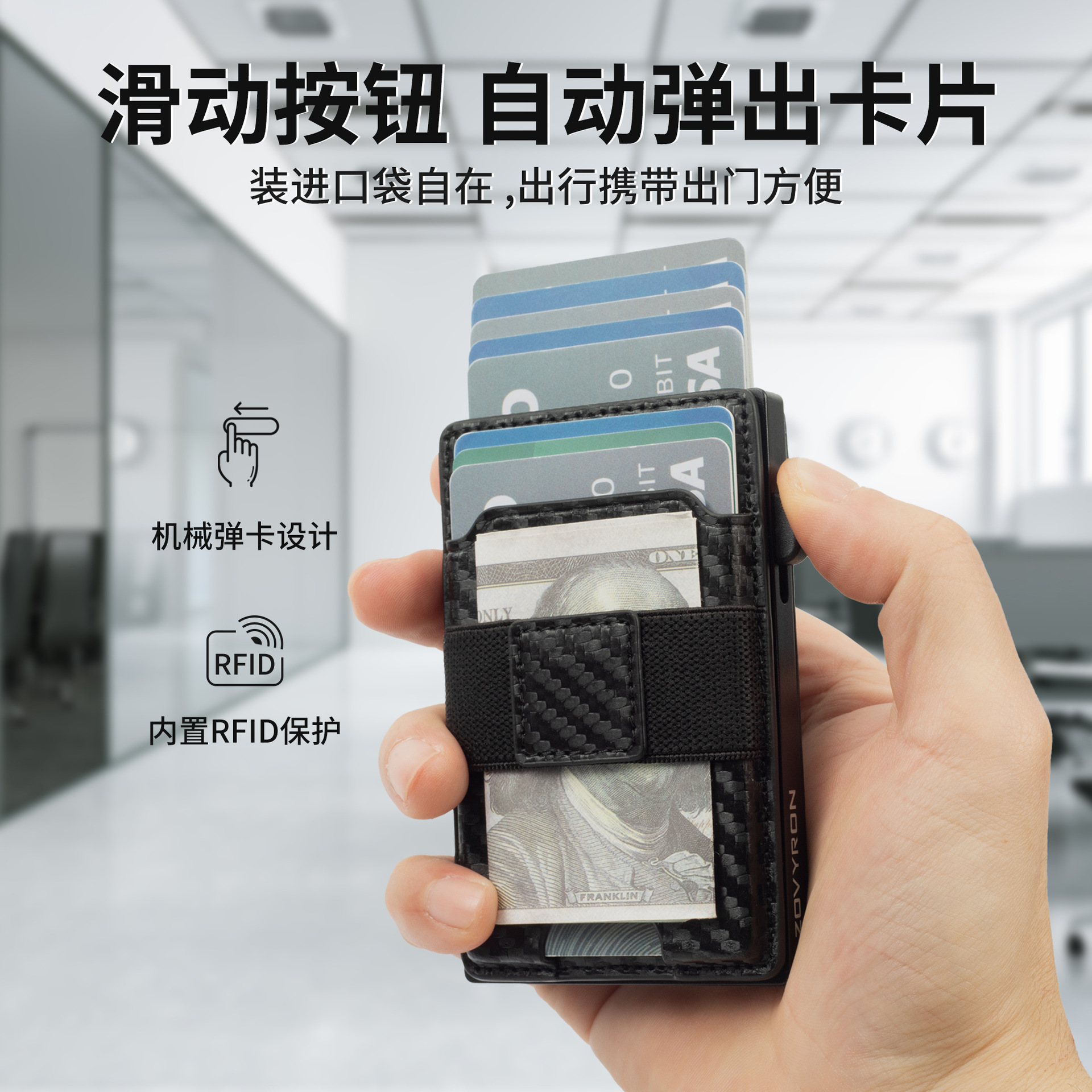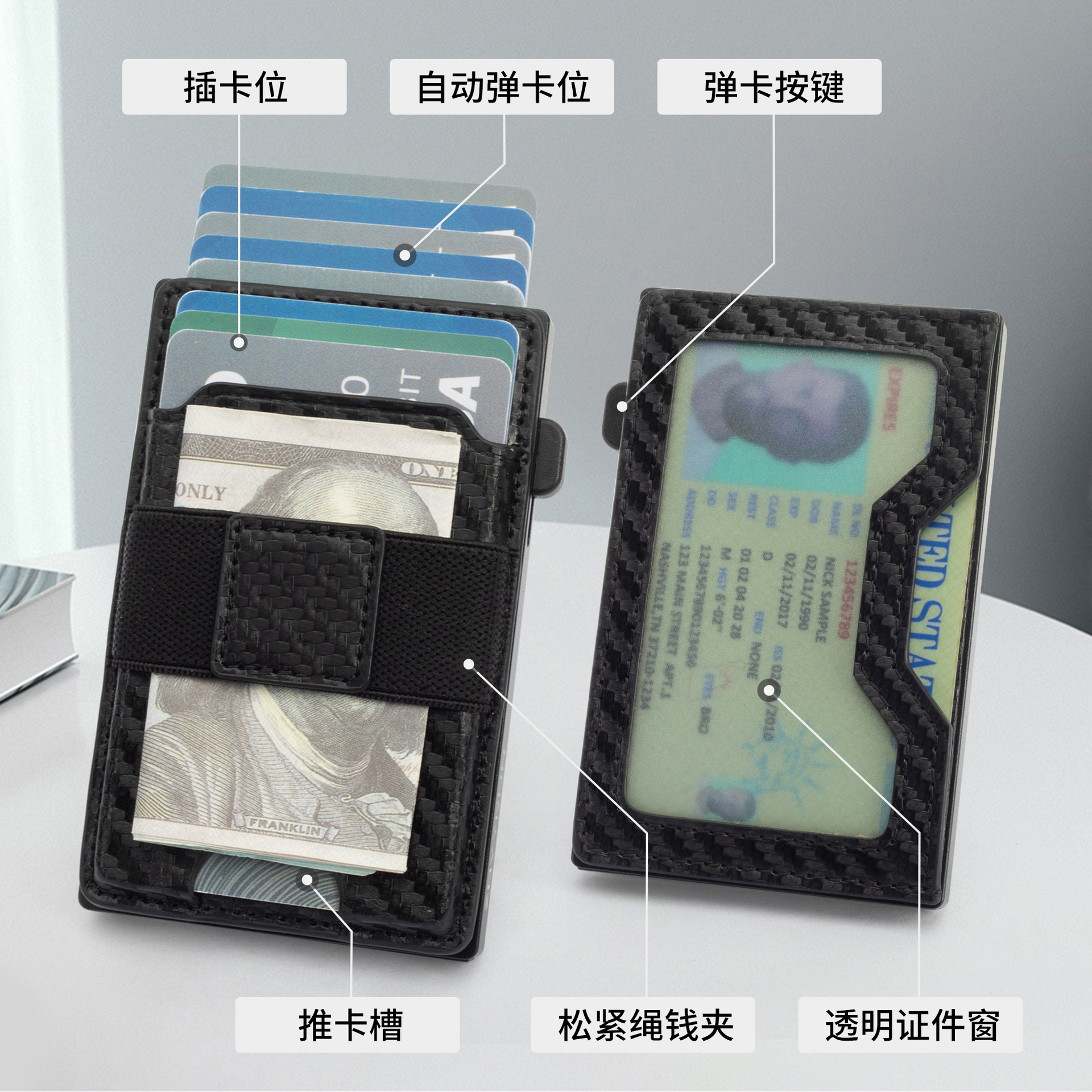 Cross-border New Metal Credit Card Case Simple Genuine Leather Wallet Men’s Advanced Sense Two-in-One Magnetic Anti-magnetic Card Bag
