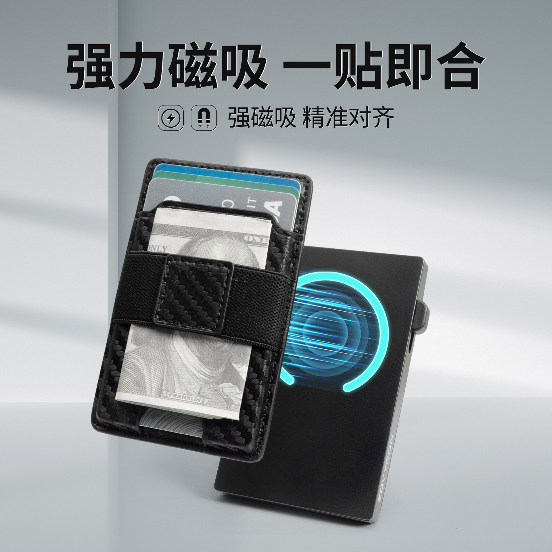 Cross-border New Metal Credit Card Case Simple Genuine Leather Wallet Men's Advanced Sense Two-in-One Magnetic Anti-magnetic Card Bag