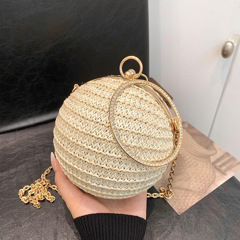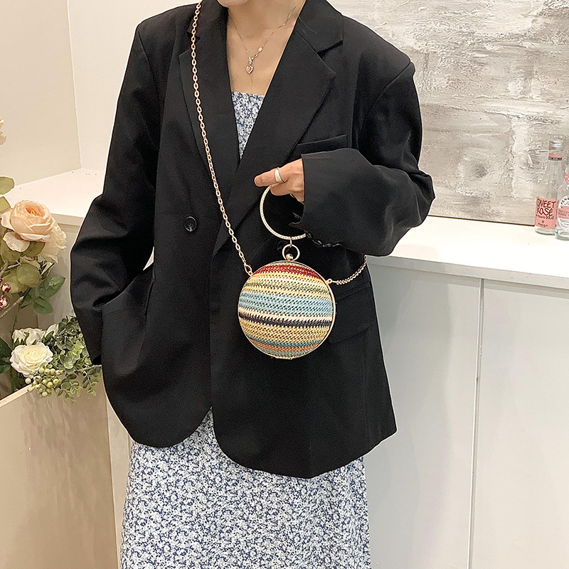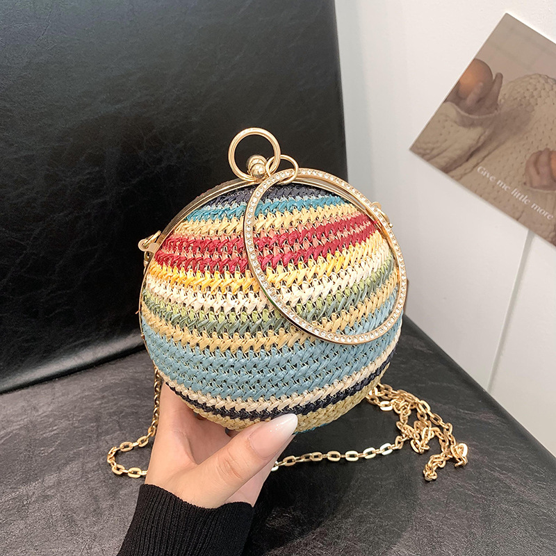 | nameOriginal | Cross-border New Mini Portable Lipstick Bag Women's 2024 Woven Striped Spherical Chain Shoulder Crossbody Bag |