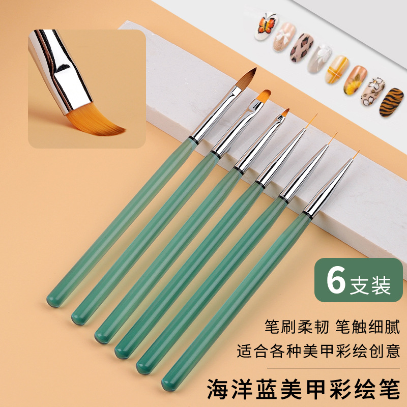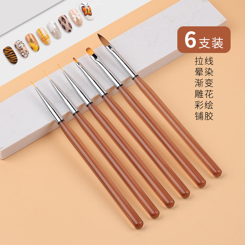 Cross-border New Nail Art Brush Set Tea Through Coffee Rod Painted Carved Line Brush Daisy Pen Round Head Phototherapy Pen