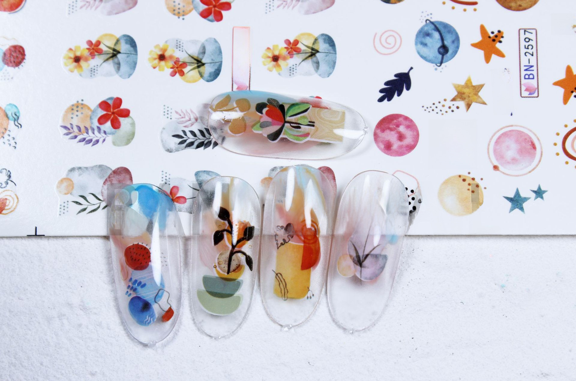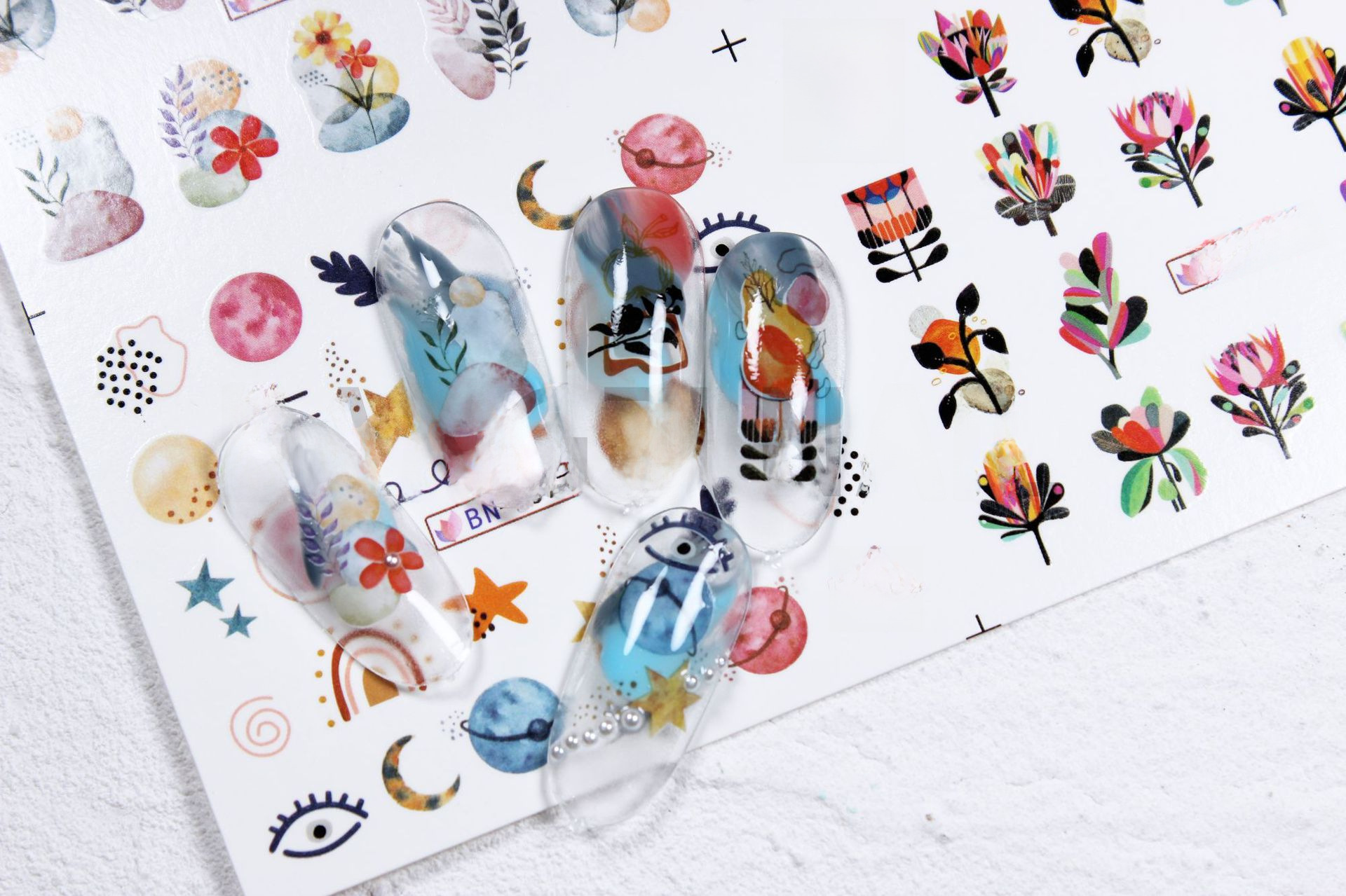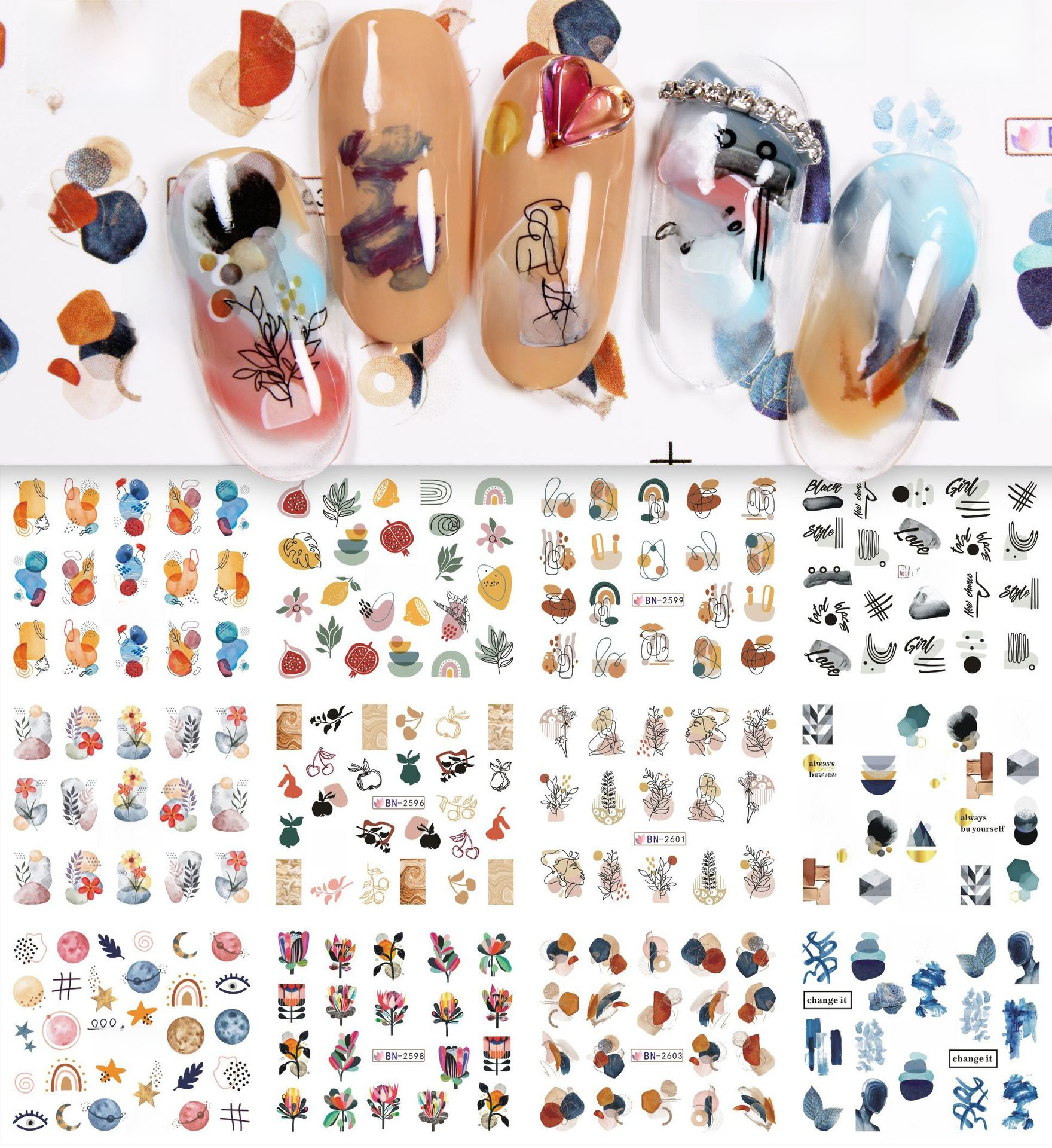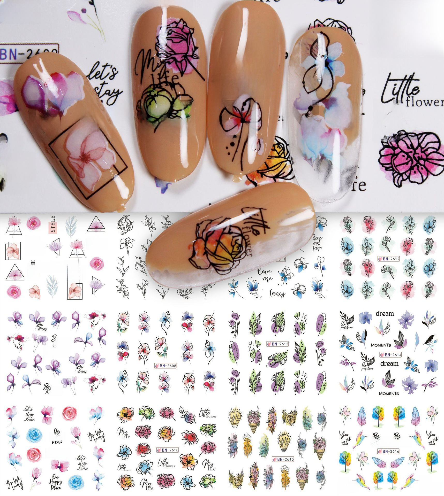 Cross-border New Nail Art Watermark Stickers ins Abstract Art Blooming Square Water Stickers Spring and Summer Flowers Fresh Water Stickers