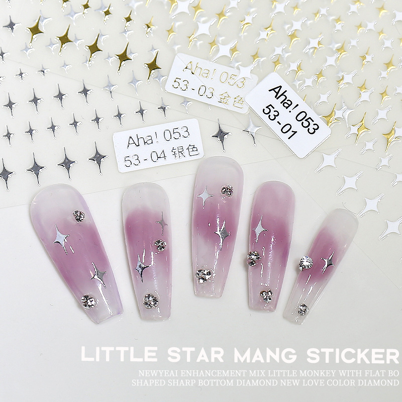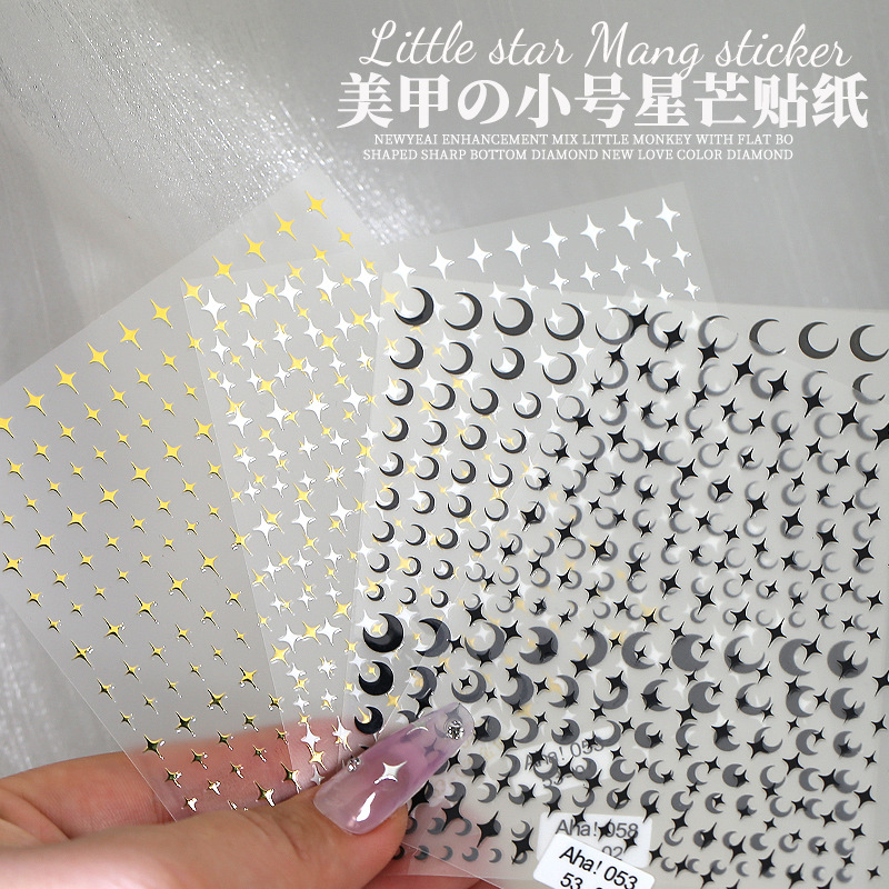 | nameOriginal | Cross-border new nail stickers wholesale online celebrity gold and silver small star black and white moon small fragrance 3d adhesive nail stickers |