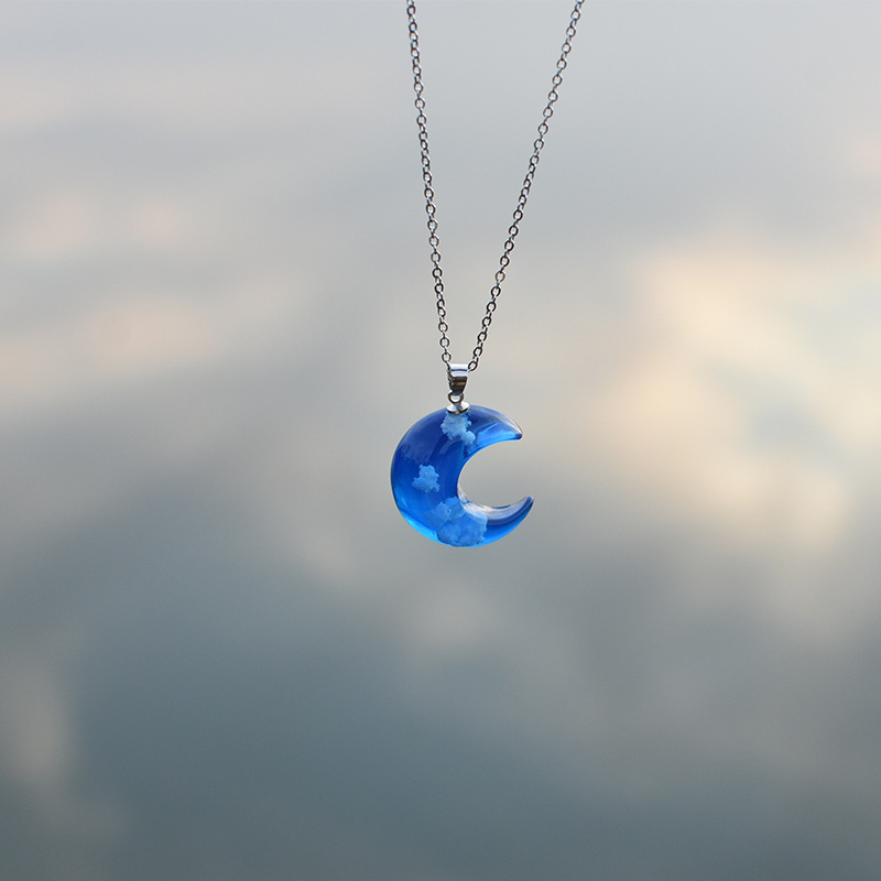 Cross-border new necklace blue sky white cloud moon resin pendant sweet simple cloud necklace in stock