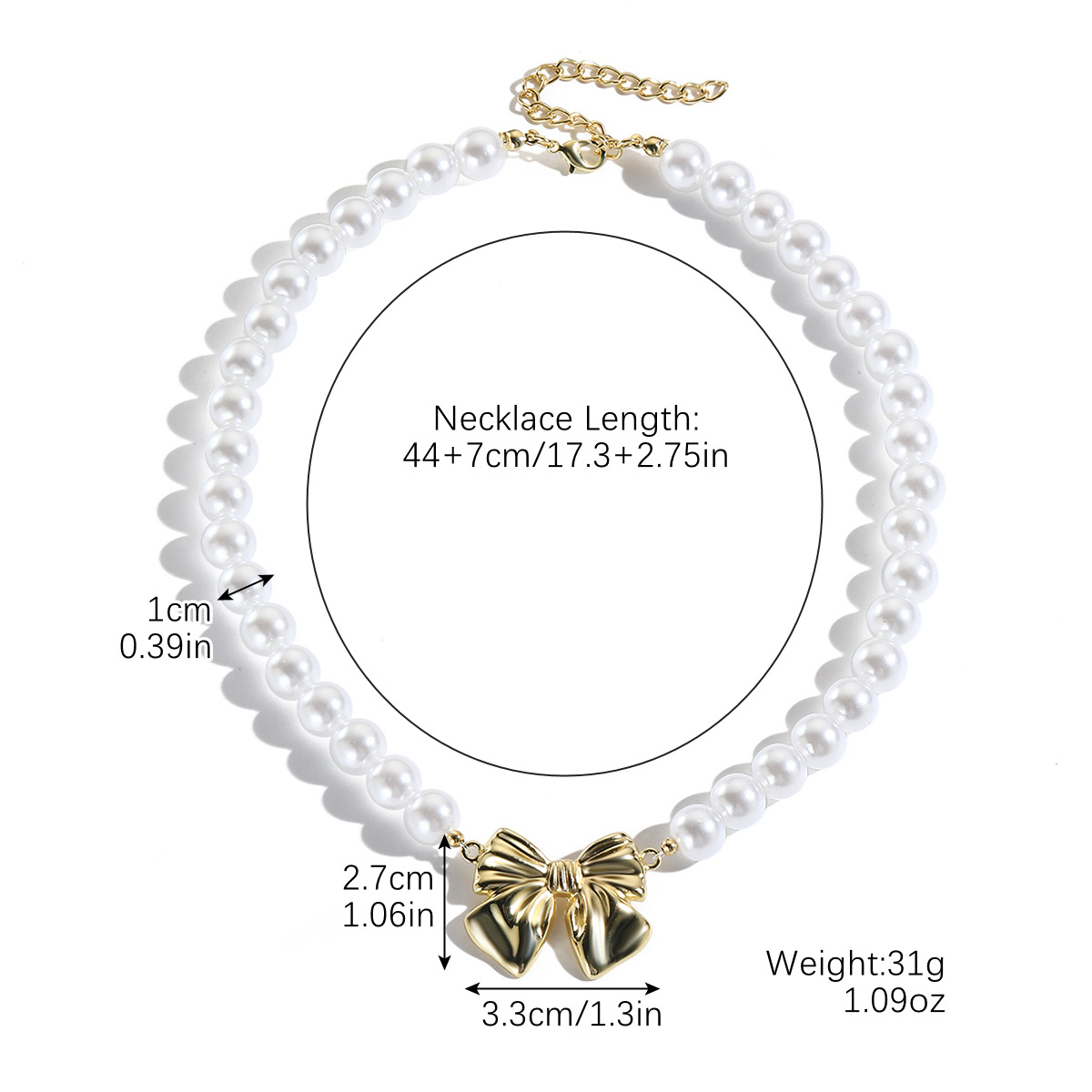 Cross-border New Niche Bow Pearl Necklace Women's All-match High-end Golden Bow Bracelet Necklace Set