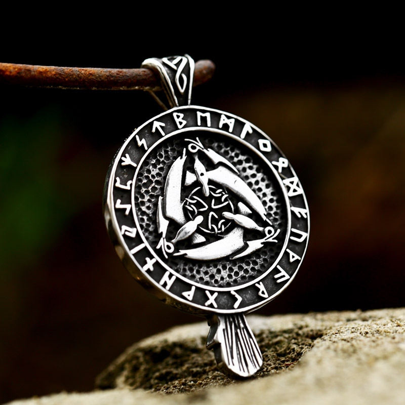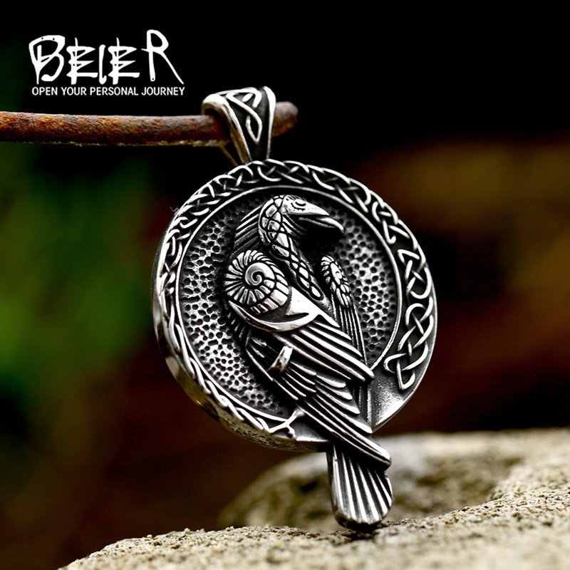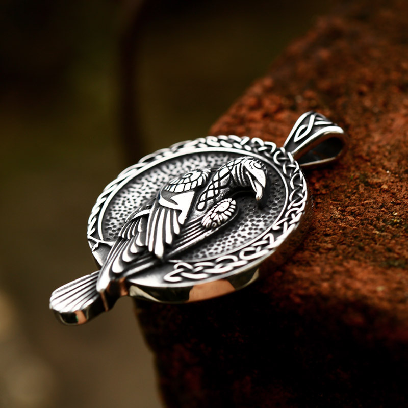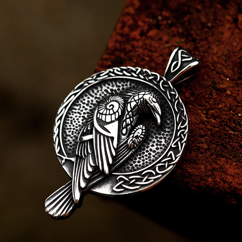 | nameOriginal | Cross-border new Nordic myth Viking Celtic knot titanium steel pendant European and American retro stainless steel Crow pendant |