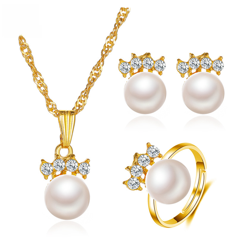 | nameOriginal | Cross-border new pearl set temperament earrings ring necklace three-piece wedding banquet clothing jewelry wholesale |