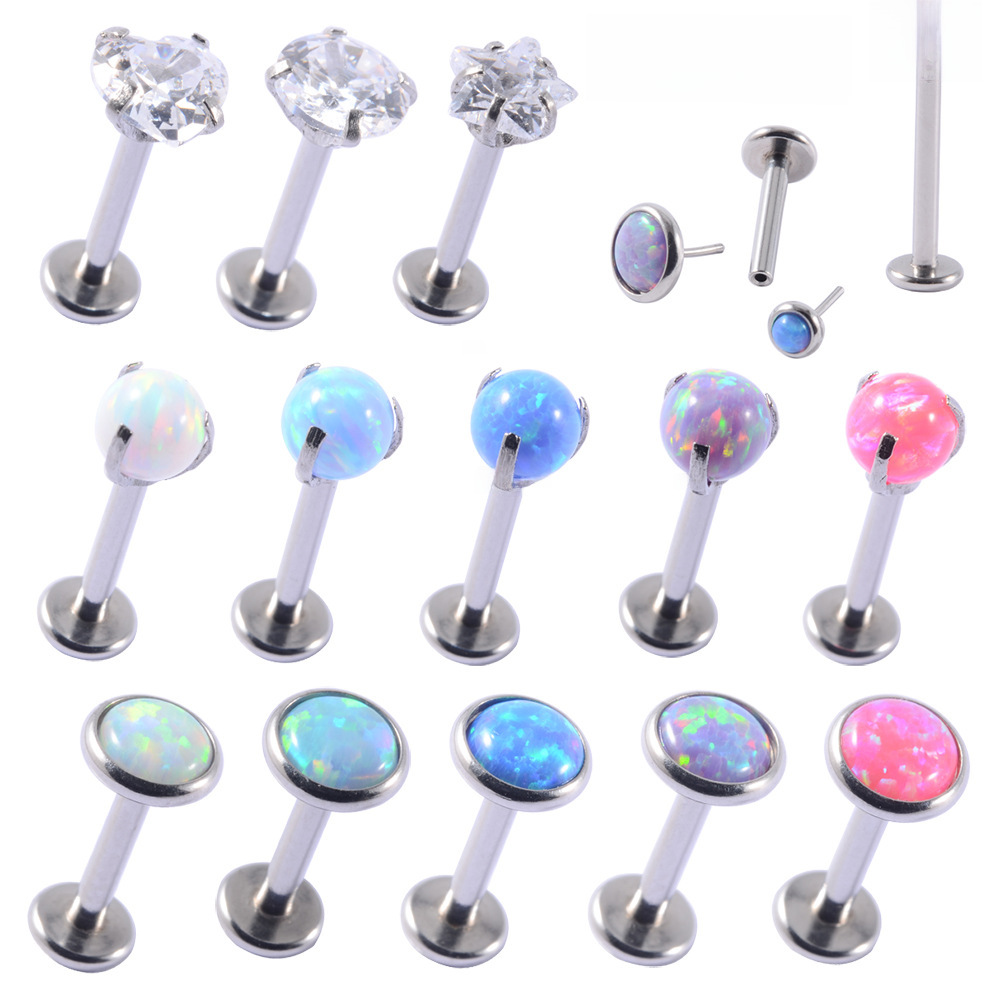 | nameOriginal | Cross-border New Pin Earrings G23 Titanium T Rod Oper Lip Nail Grasping Zircon opal Ball Earrings Bone Nail opal Earrings |