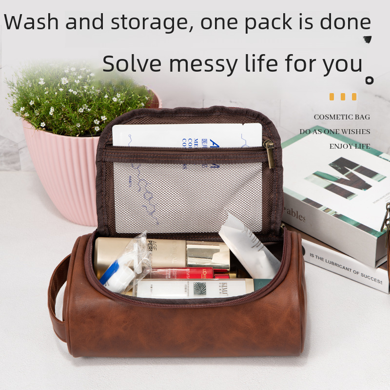 | nameOriginal | Cross-border New Portable Leather Cosmetic Bag Retro European and American Brand Cosmetic Bag Advanced Waterproof Travel Wash Bag |