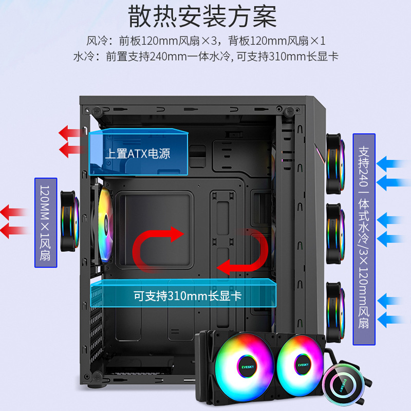 | nameOriginal | Cross-border New Product Ling to Side Transparent Computer Chassis Desktop Personalized Iron Net Internet Cafe Water-cooled Game E-sports Chassis |