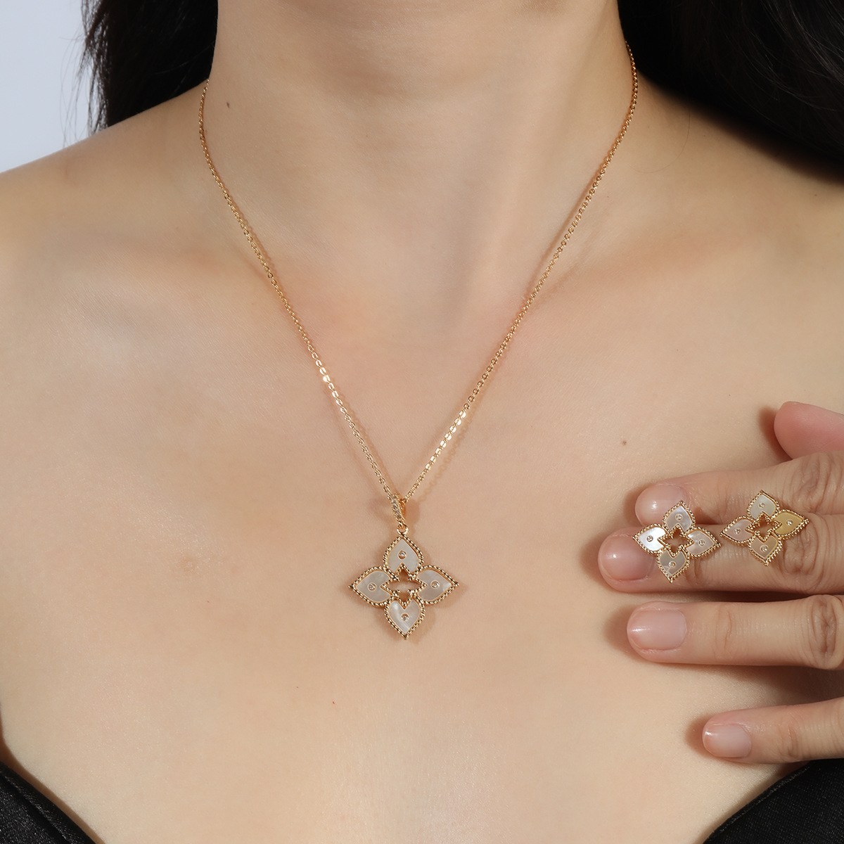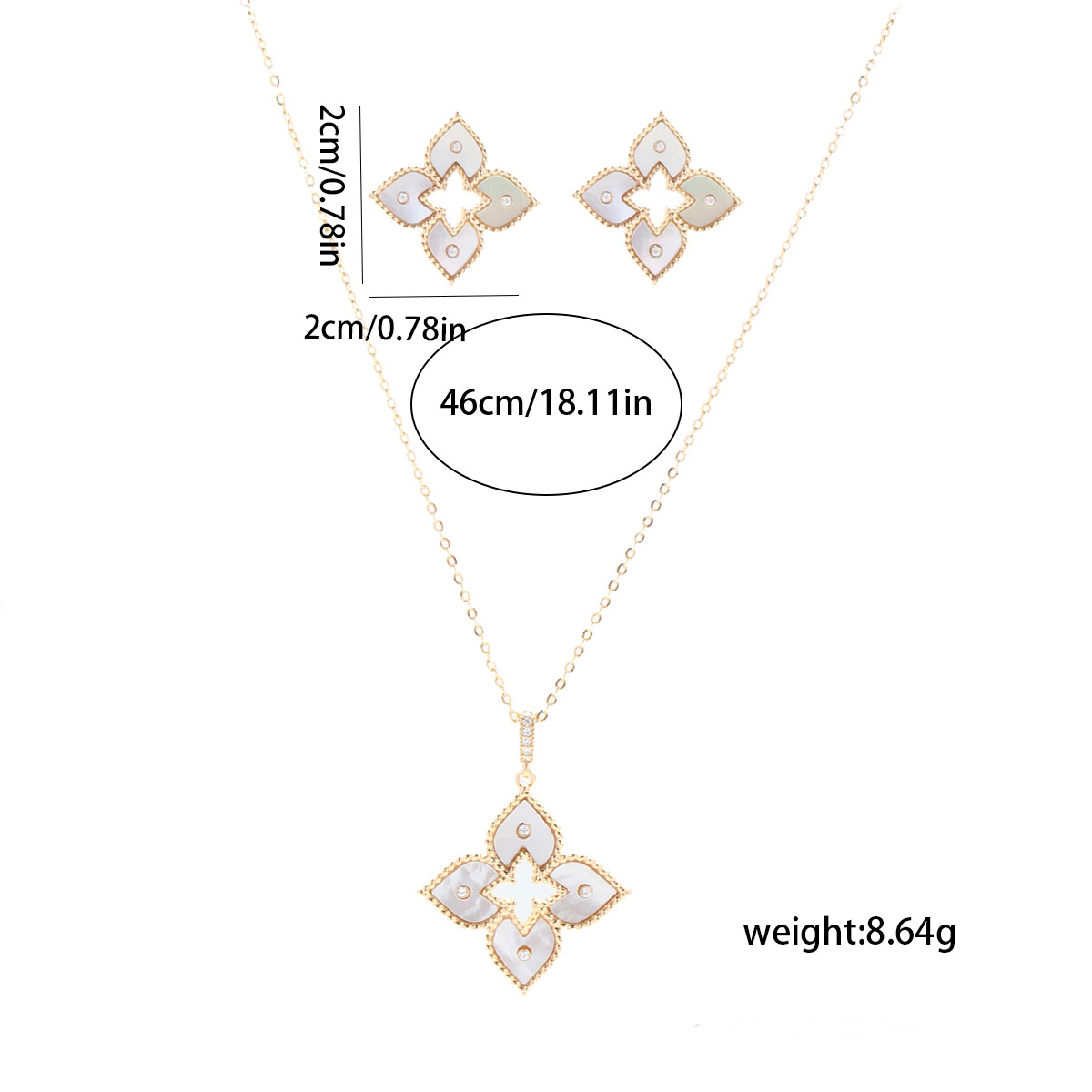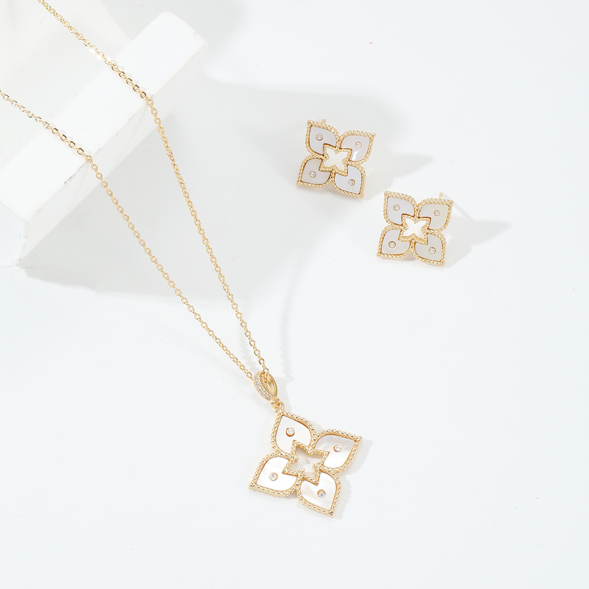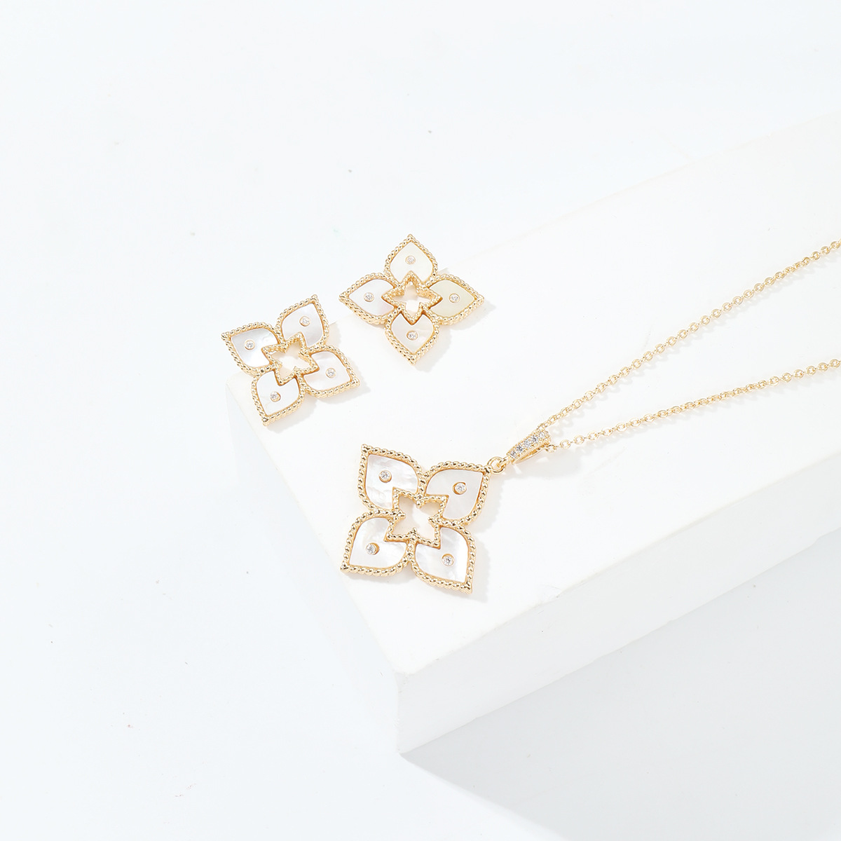 | nameOriginal | Cross-border New Products Shell Lucky Four-leaf Clover Pendant Earrings Women Light Luxury Niche Design Fashion suit Jewelry Wholesale |
