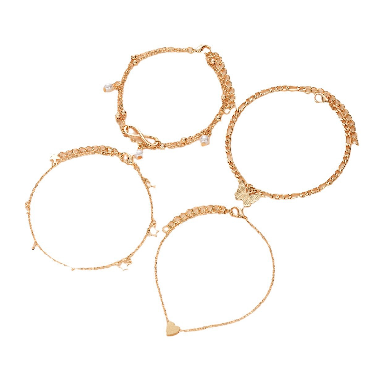 | nameOriginal | Cross-border new retro five-pointed star butterfly love pearl 8-character multi-layer anklet beach ethnic foot ornaments 5-piece set |