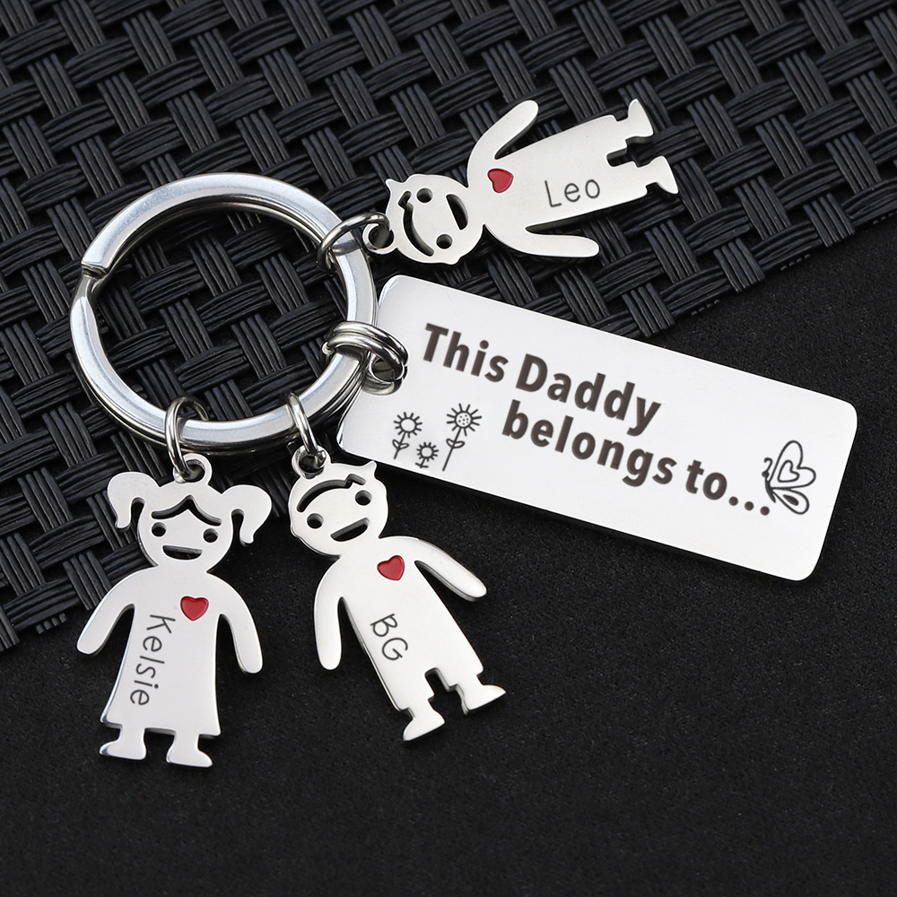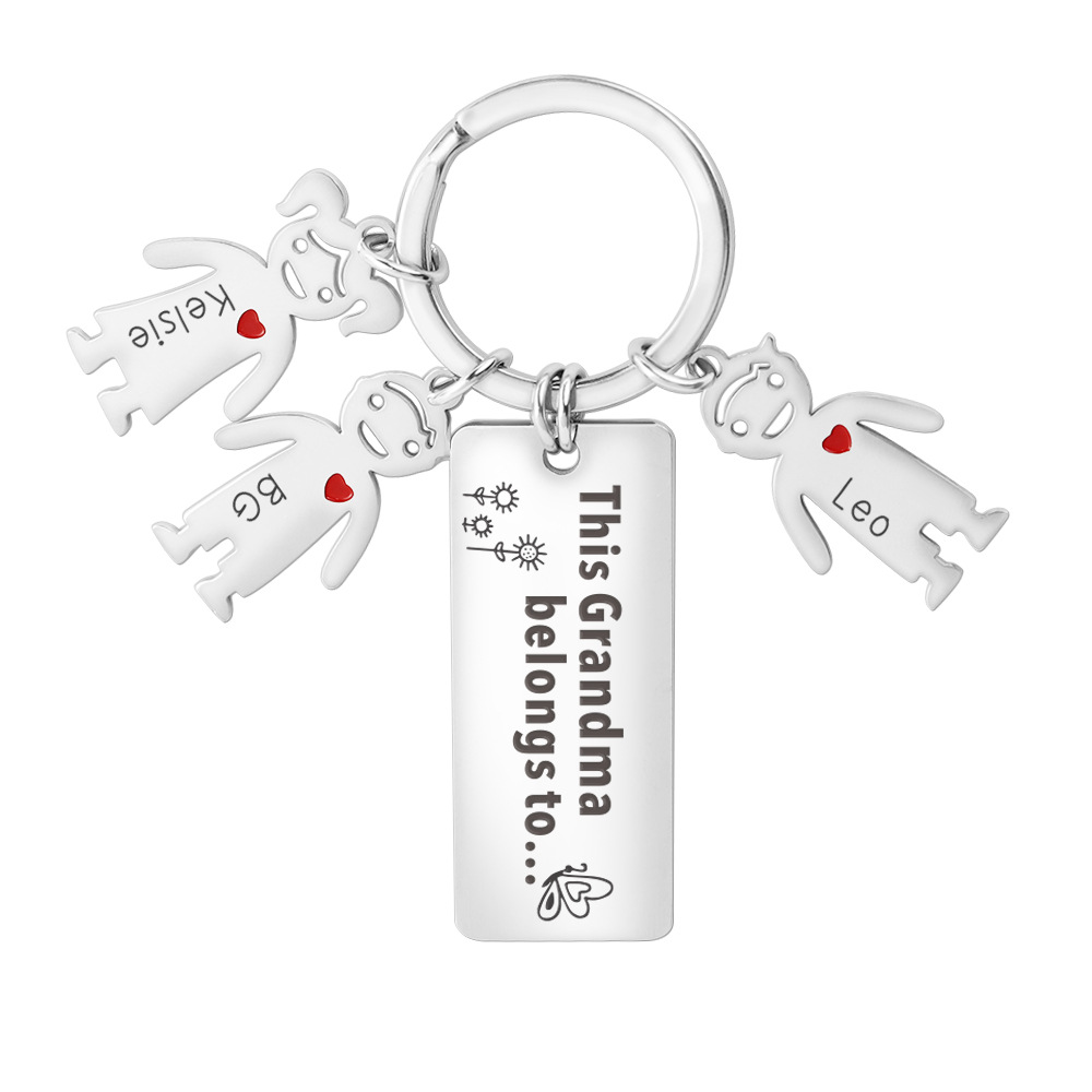 Cross-border new stainless steel Cartoon Doll keychain pendant DIY lettering creative small gift for family and friends
