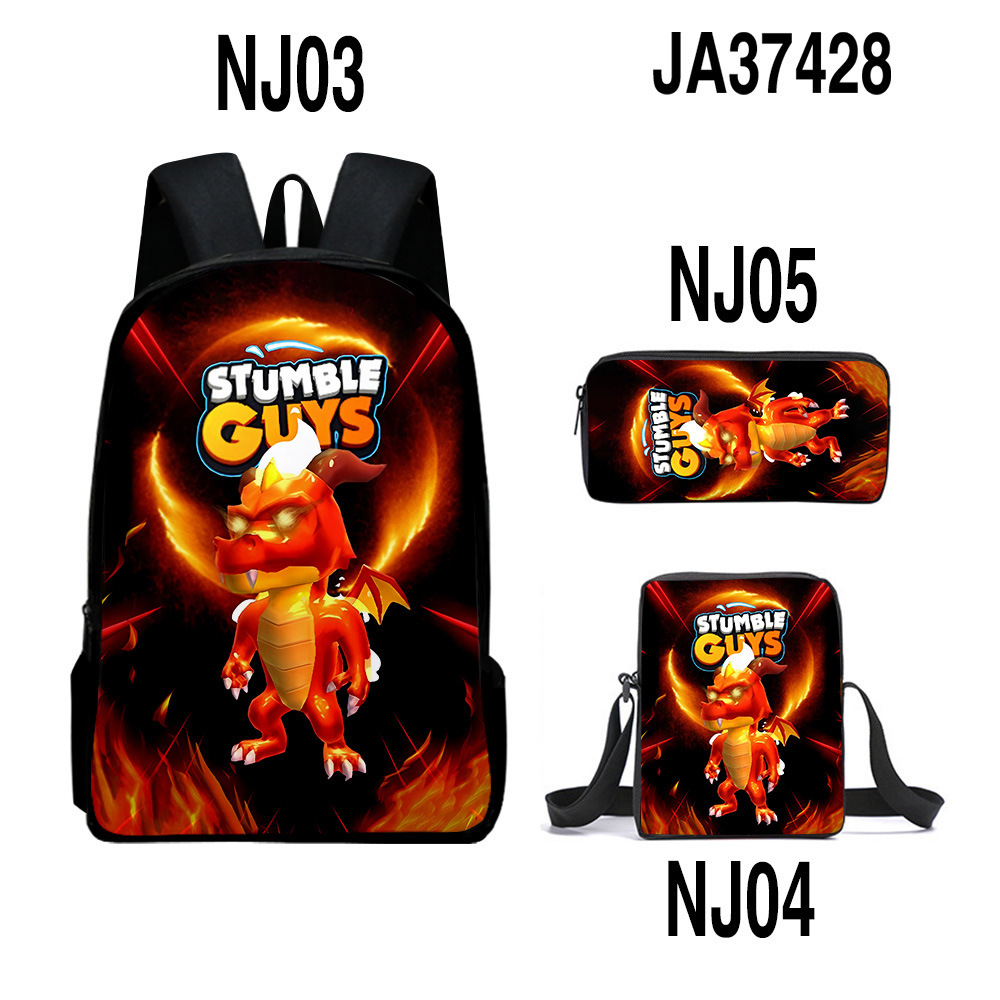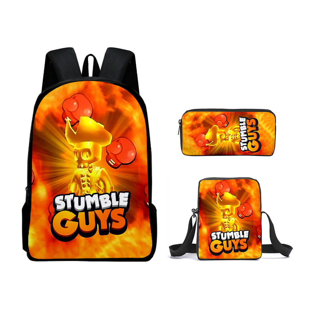 Cross-border new Stumble Guys collision party schoolbag backpack pencil case small shoulder bag three-piece set in stock