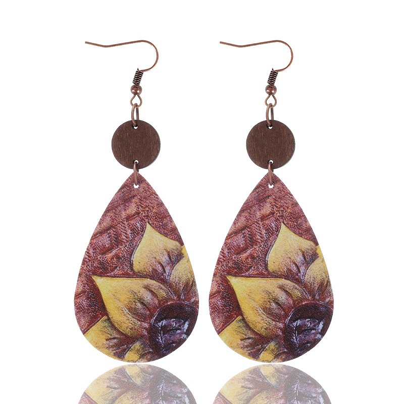 | nameOriginal | Cross-border new sunflower rose pattern leather earrings women's earrings AliExpress Amazon |
