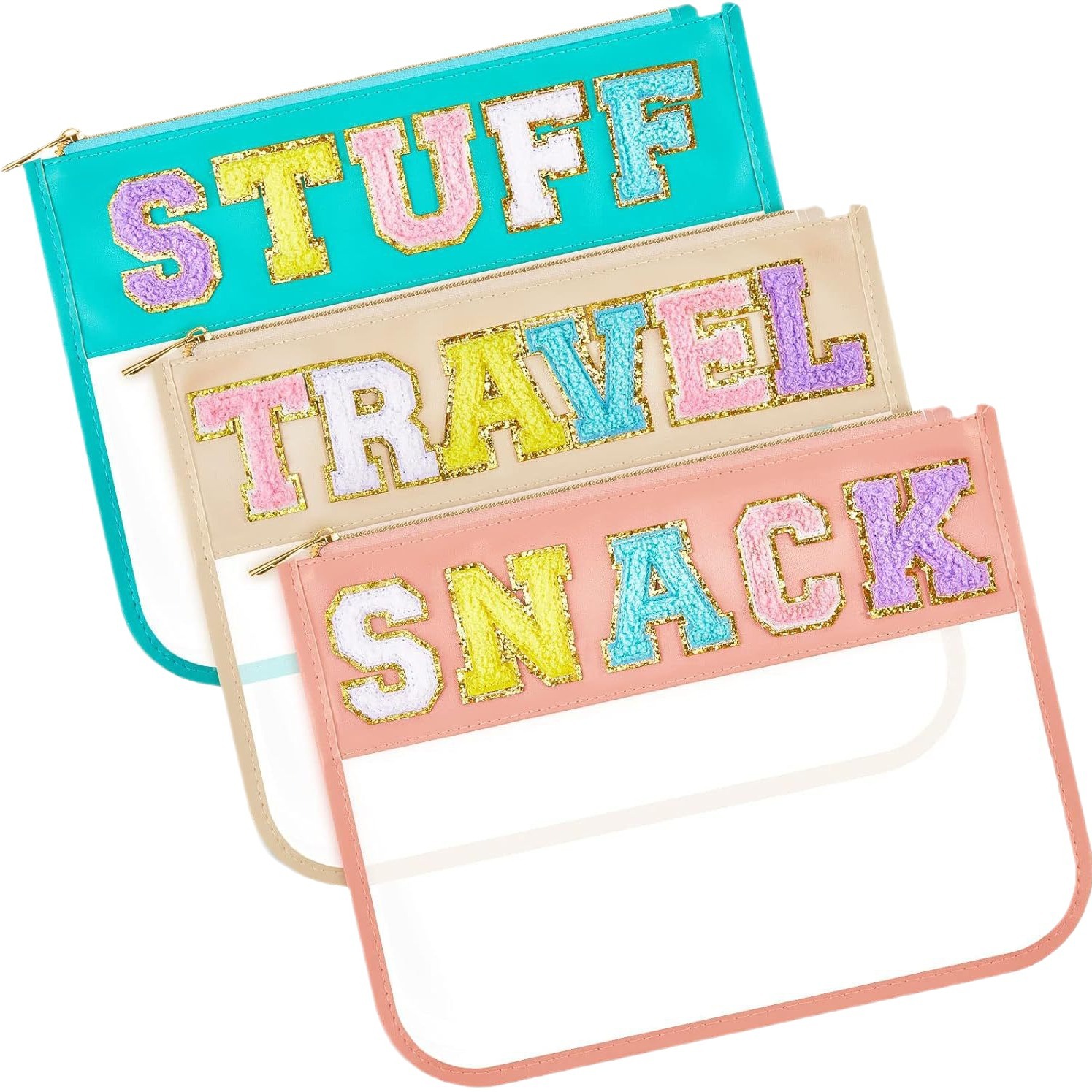 Cross-border New Transparent PVC Zipper Bag Embroidered Letters Portable Cosmetic Bag PU Waterproof Portable Storage Bag