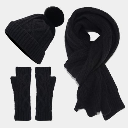 Cross-border new twist knitted hat scarf gloves three-piece set female Amazon hot sale autumn and winter warm three-piece set