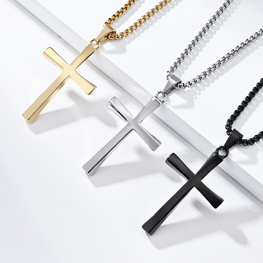 Cross-border new twisted titanium steel cross necklace neutral simple cold style accessories personalized pendant hot selling jewelry