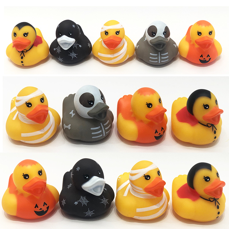 Cross-border New Vinyl 6cm Halloween Duck Party Gift Squeaking Water Play Toy Duck Ghost Festival Little Yellow Duck
