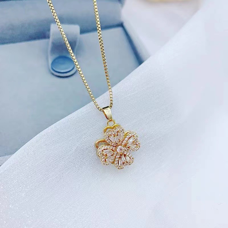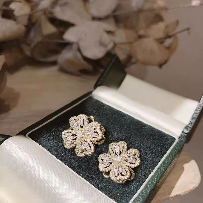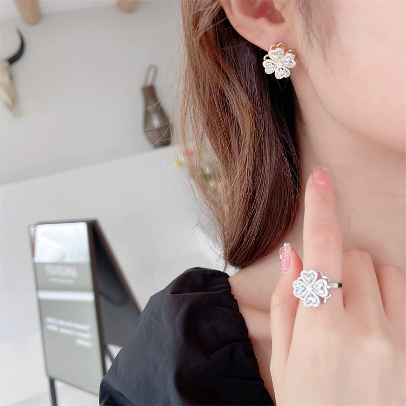 | nameOriginal | Cross-border niche light luxury zircon earrings ring flower clavicle chain earrings trendy rotatable lucky grass suit |