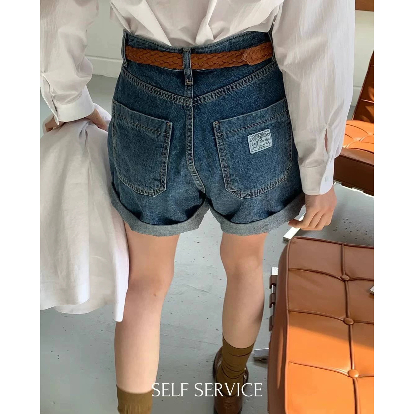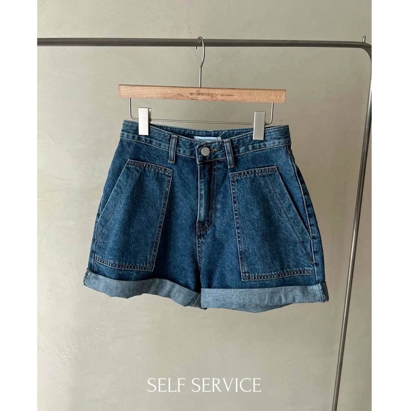Cross-border now 2024 spring and summer new South Korea designer American high waist large pocket hem Denim shorts