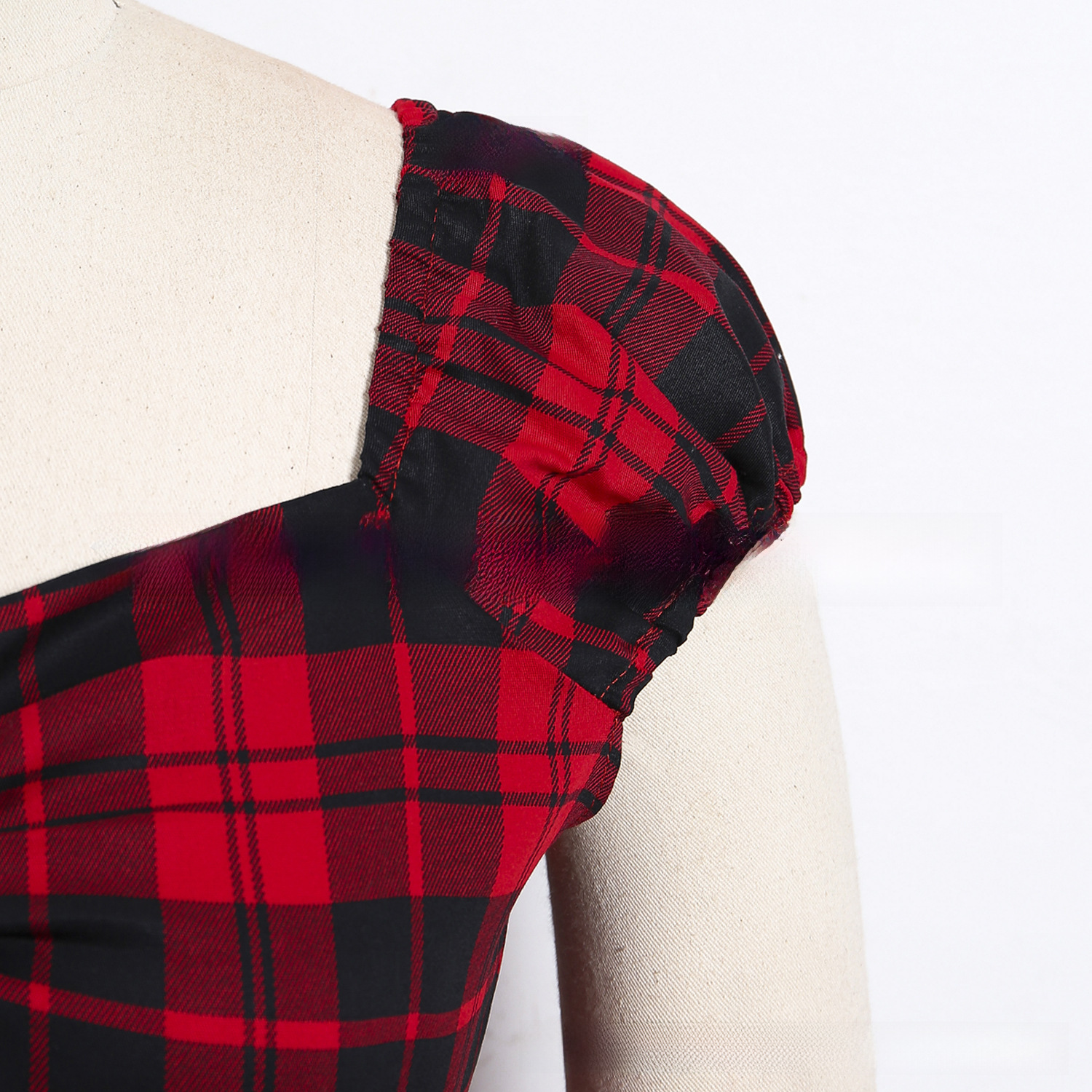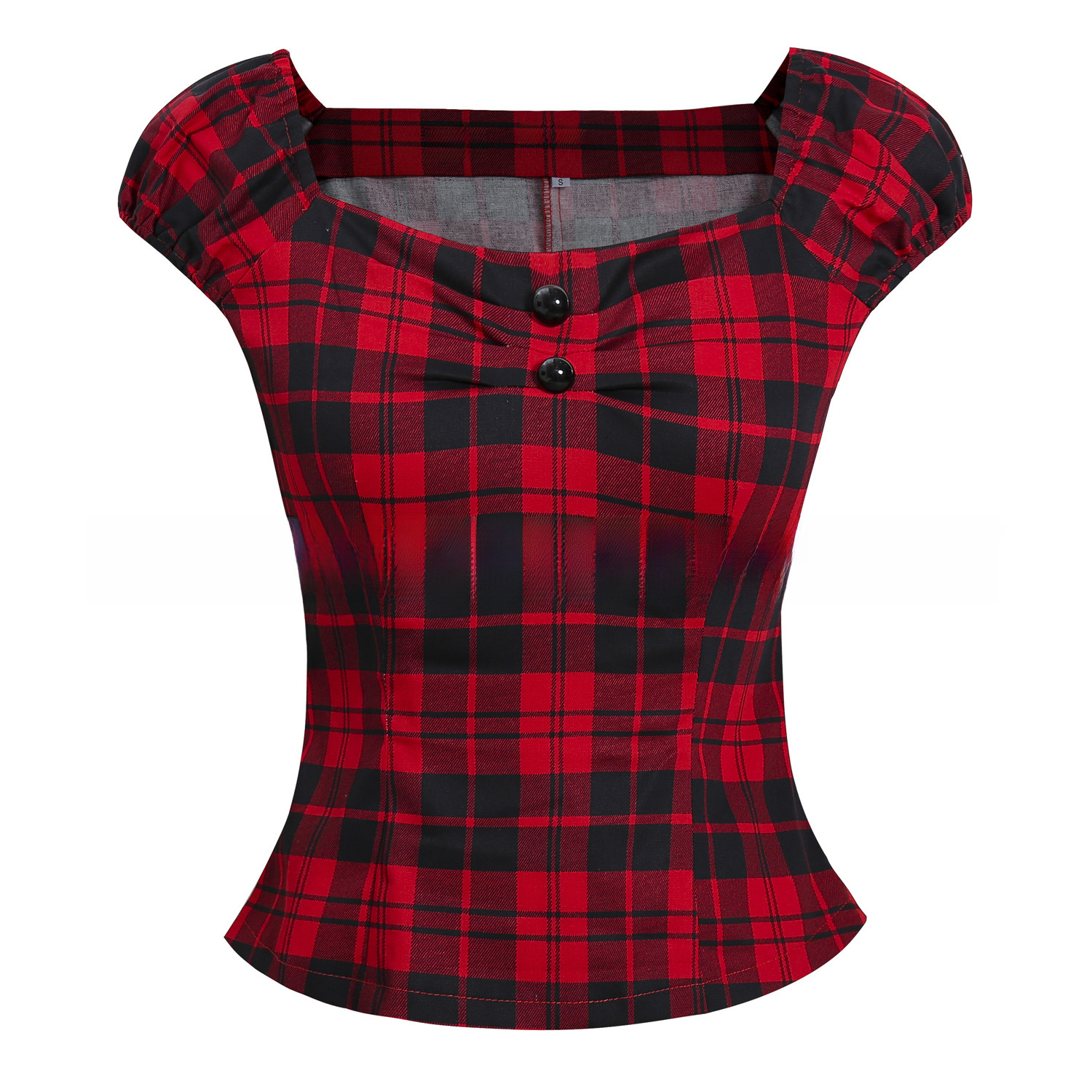 | nameOriginal | Cross-border original retro style classic plaid pleated button doll sleeve cotton top European and American women's clothing factory in stock |