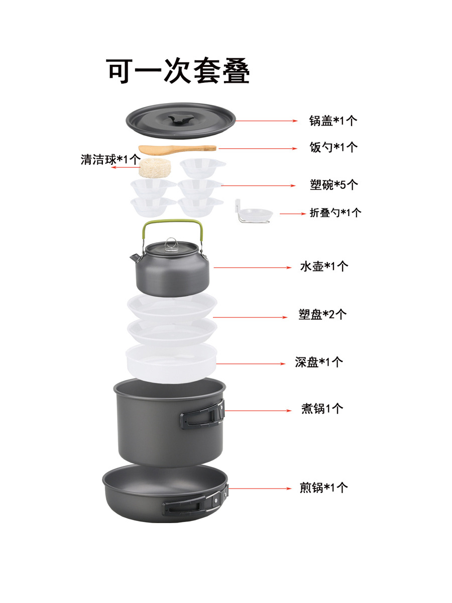 | nameOriginal | Cross-border Outdoor Cookware Camping Portable Non-stick Cookware Neaulable Outdoor Kettle Cookware Combination Set Cookware |