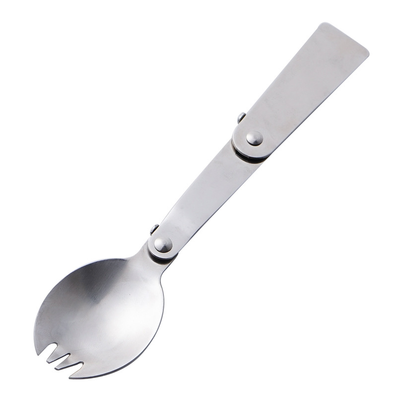Cross-border Outdoor Folding Spoon 304 Stainless Steel Rice Spoon Picnic Fork Spoon Barbecue Mountain Climbing Travel Portable Mini Soup Spoon