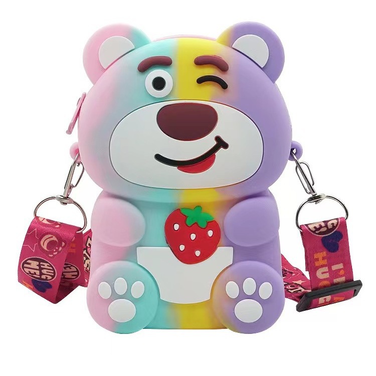 | nameOriginal | Cross-border popular strawberry bear bag cartoon children's silicone bag cute crossbody shoulder bag girls' coin purse bag |