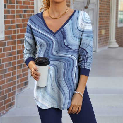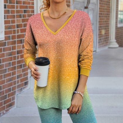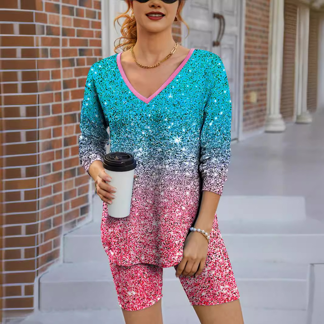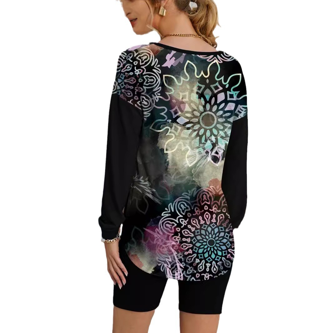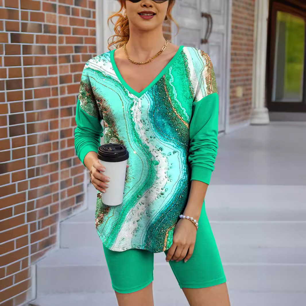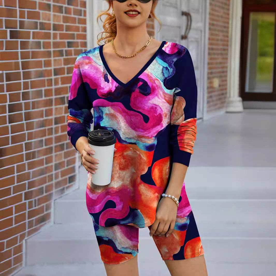 | nameOriginal | Cross-border Printed Two-piece suit Women's Two-piece V-neck Long-sleeved T-shirt Shorts suit Top Sets for Multiple Occasions |