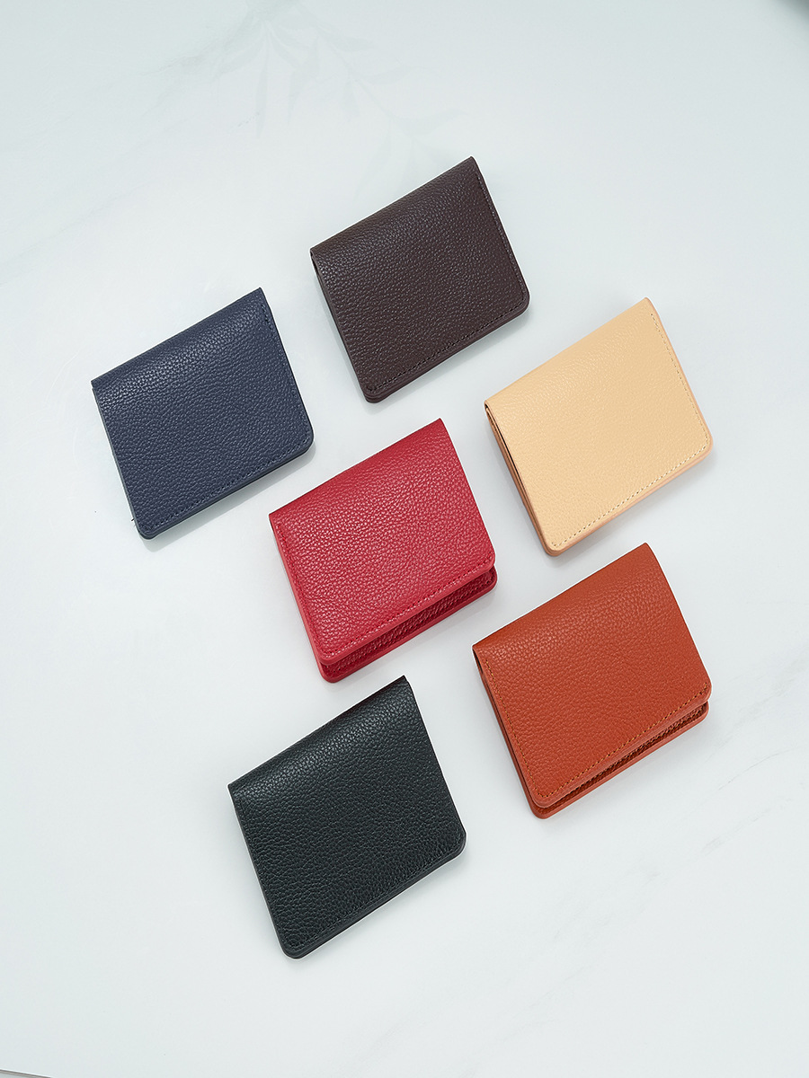 Cross-border PU leather lychee pattern ultra-thin large capacity men’s and women’s business wallet multi-functional wallet Japanese and Korean ID card bag