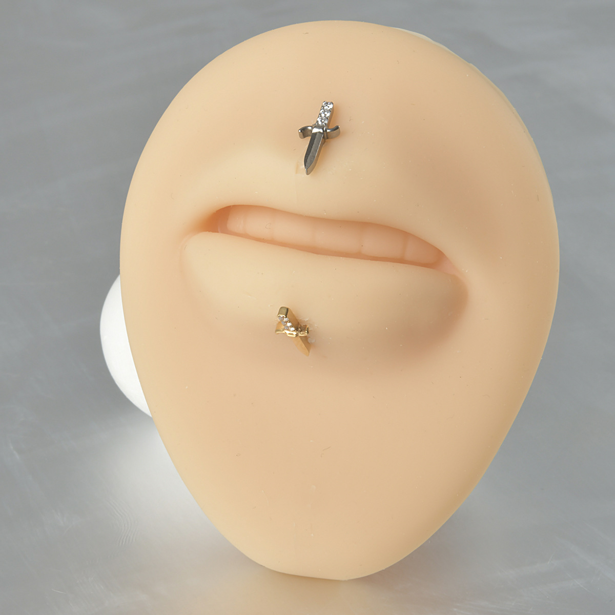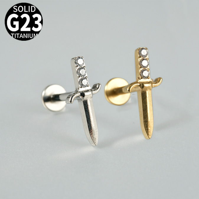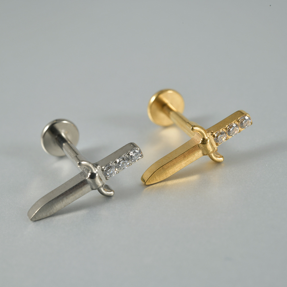 | nameOriginal | Cross-border Puncture G23 Titanium Internal Thread Lip Nail Titanium Zircon Cross Sword Ear Nail Distinctive T-shaped Inner Teeth Earrings |