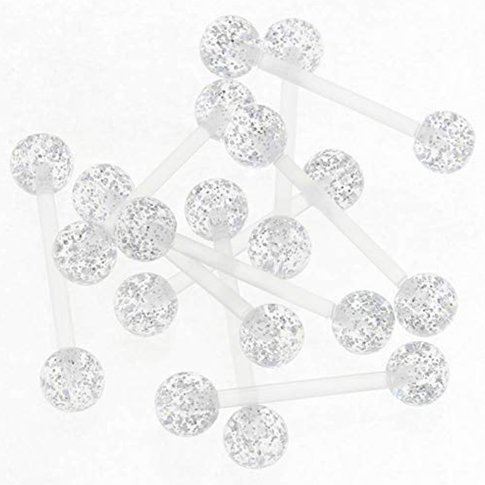 Cross-border puncture jewelry tongue nail acrylic UV invisible tongue nail 14g sequin transparent tongue ring Amazon best selling