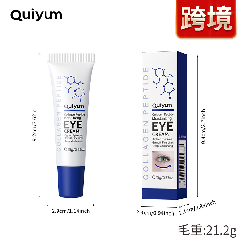 | nameOriginal | Cross-border QUIYUM collagen peptide moisturizing eye cream 15g hydrating moisturizing skin color lifting factory in stock wholesale |