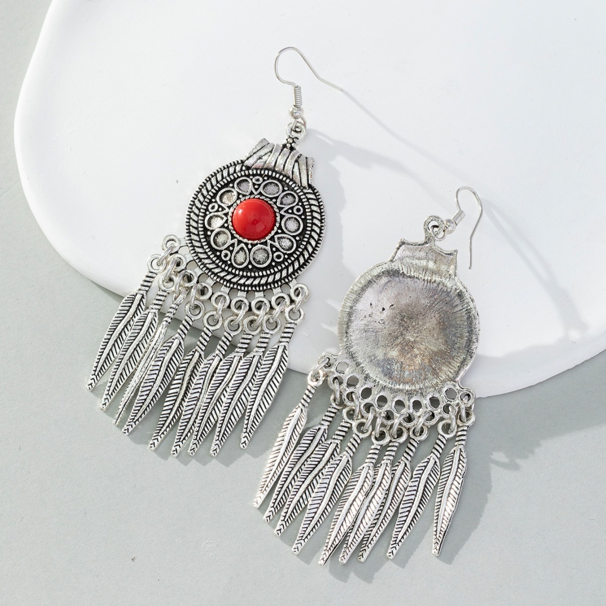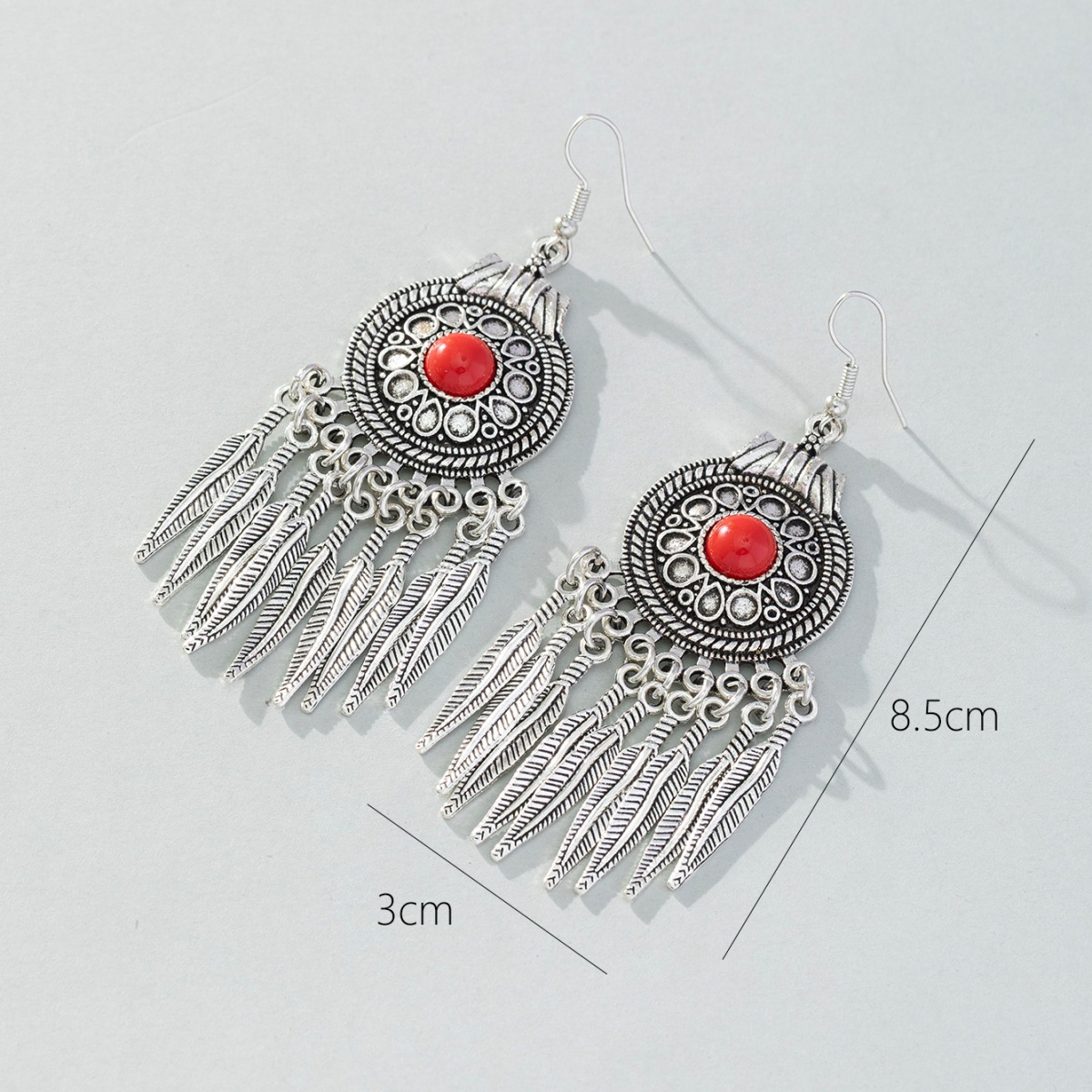 Cross-border retro ethnic style turquoise earrings dream catcher metal tassel earrings earrings
