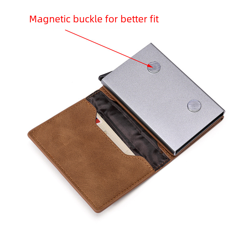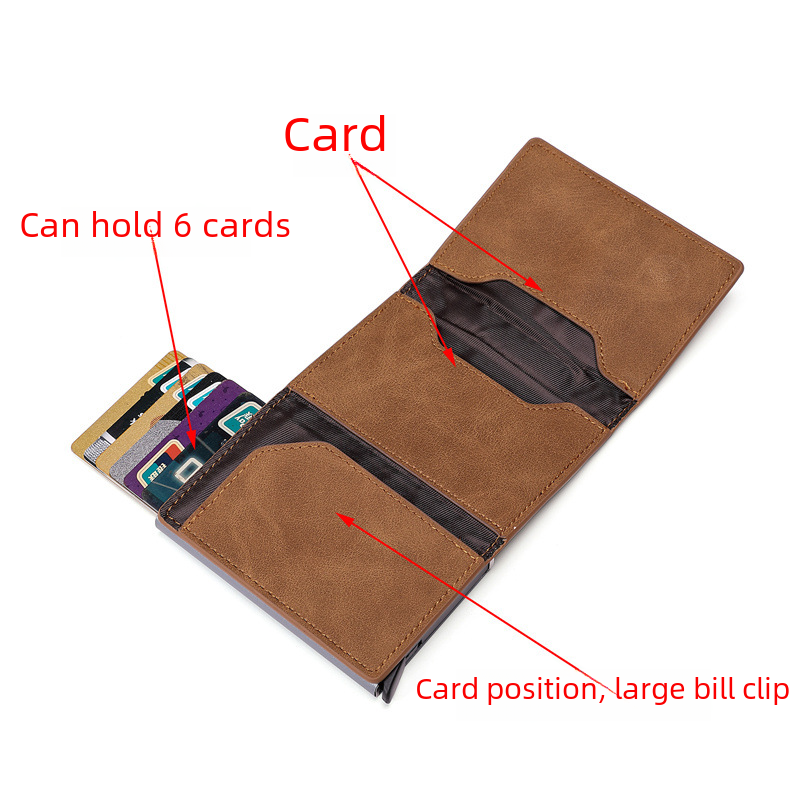| nameOriginal | Cross-border RFID metal credit card box card holder business men and women portable card holder multi-functional seven-character pull small wallet |