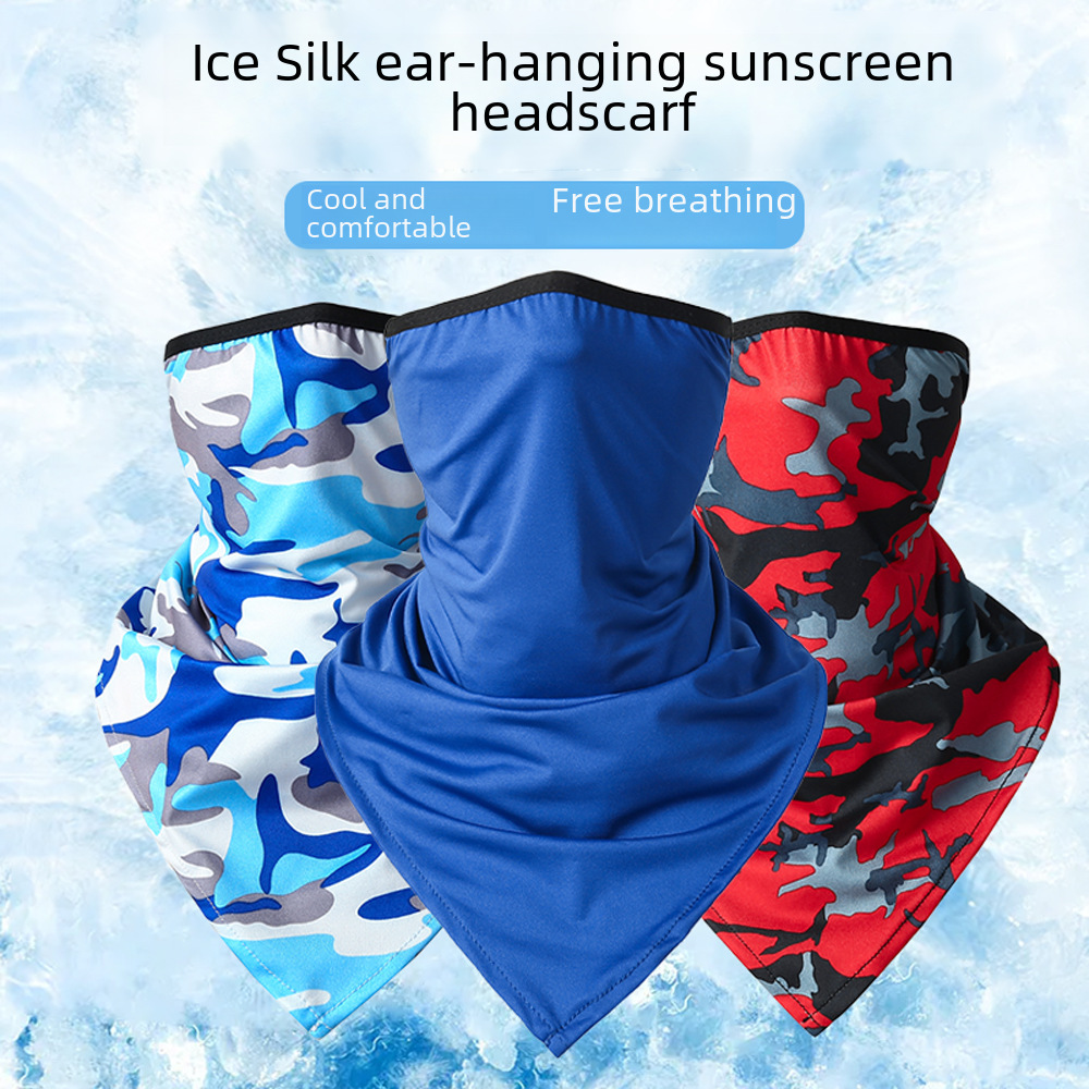 Cross-border Riding Triangle Towel Mask Sports Hanging Ear Ice Silk Triangle Towel for Men and Women Outdoor Multifunctional Sunscreen Face Towel