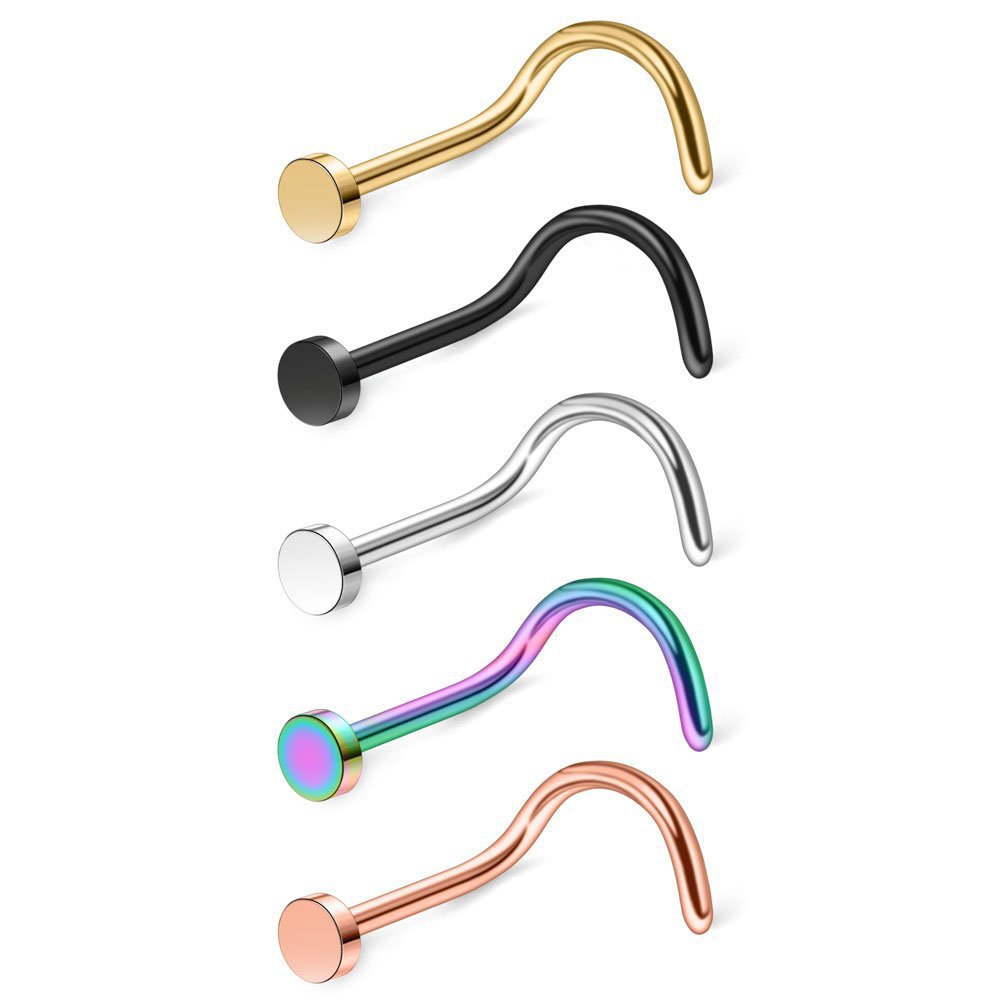 | nameOriginal | Cross-border round cake stainless steel nose nail ring puncture jewelry 1.5mm 2.0mm 2.5 straight rod l curved rod 20G manufacturers |