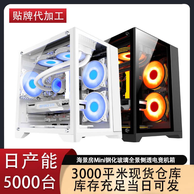Cross-border Seaview Room Mini Computer Chassis Desktop Panoramic Side-view Game E-sports M-ATX Water-cooled Chassis