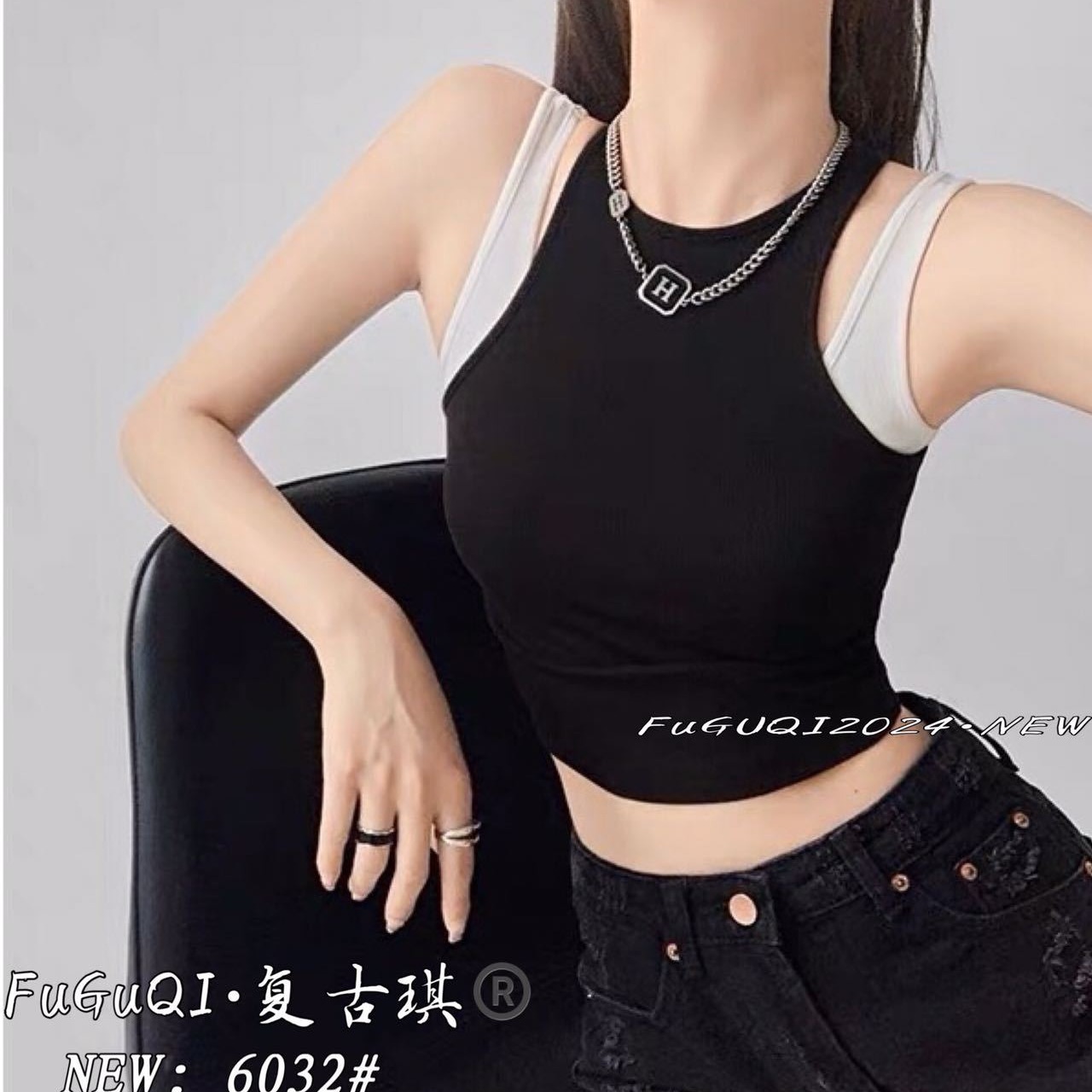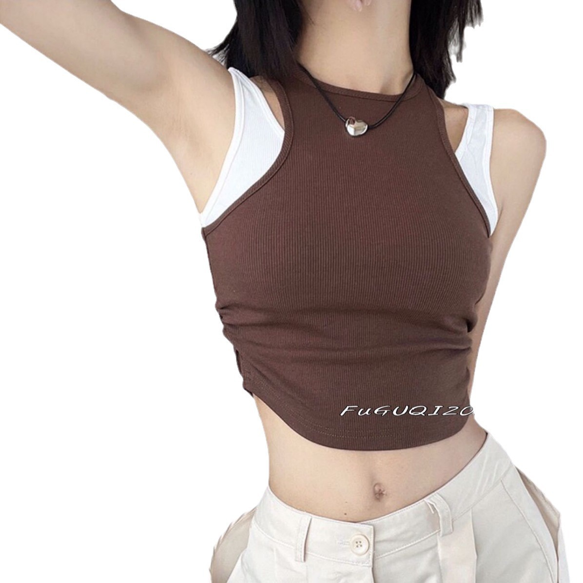 | nameOriginal | Cross-border sexy European and American fake two-piece beautiful back camisole color contrast yoga slim all-match outer wear base top |