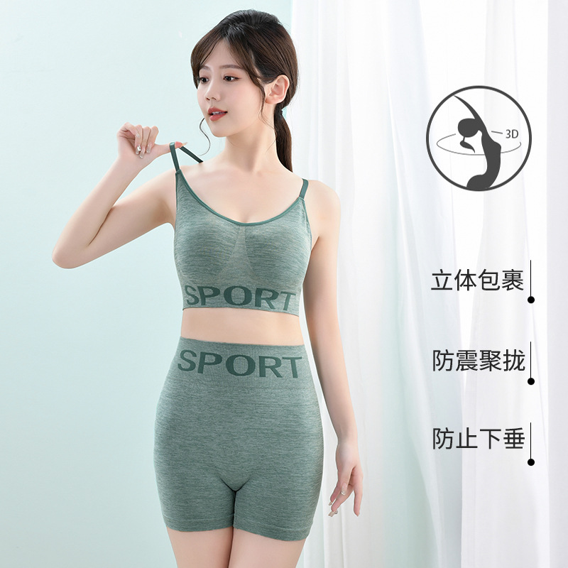 Cross-border sexy sling seamless beauty back underwear suit fixed halter shoulder strap push up shockproof sports suit women