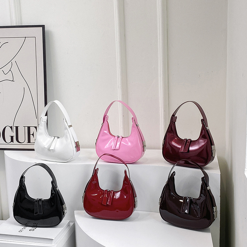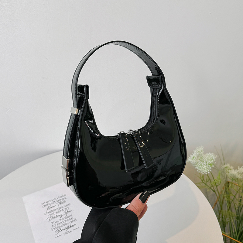 Cross-border Shoulder Bag Women's 2024 New Spring and Summer Patent Leather Gloss High-end Sense French Crescent Bag Portable Underarm Bag