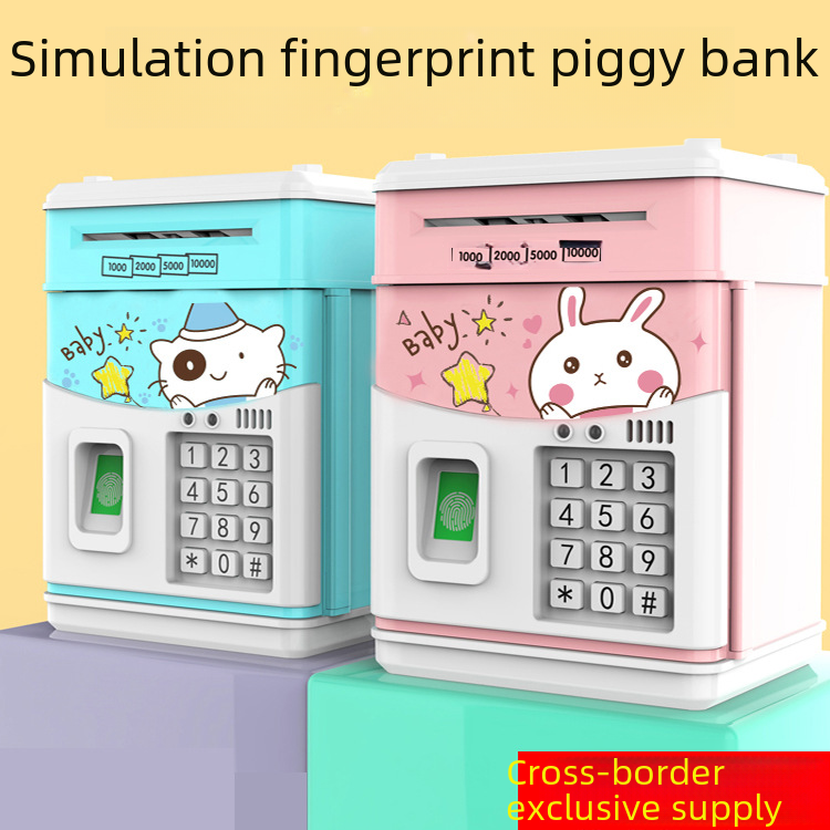 | nameOriginal | Cross-border simulation fingerprint sensor children's piggy bank cartoon ATM password box automatic roll money creative gift toys |