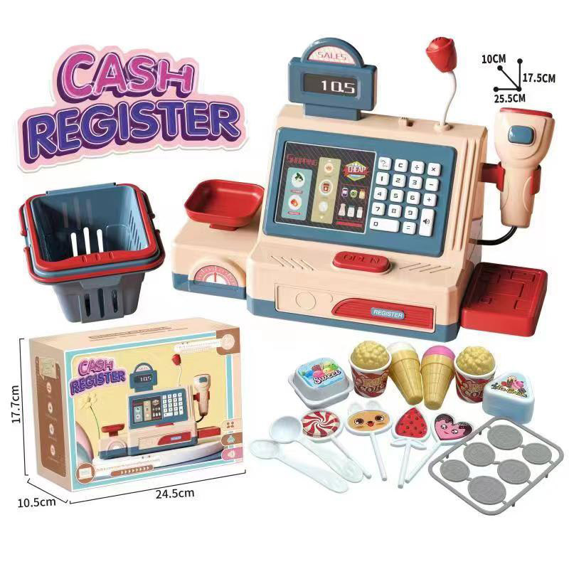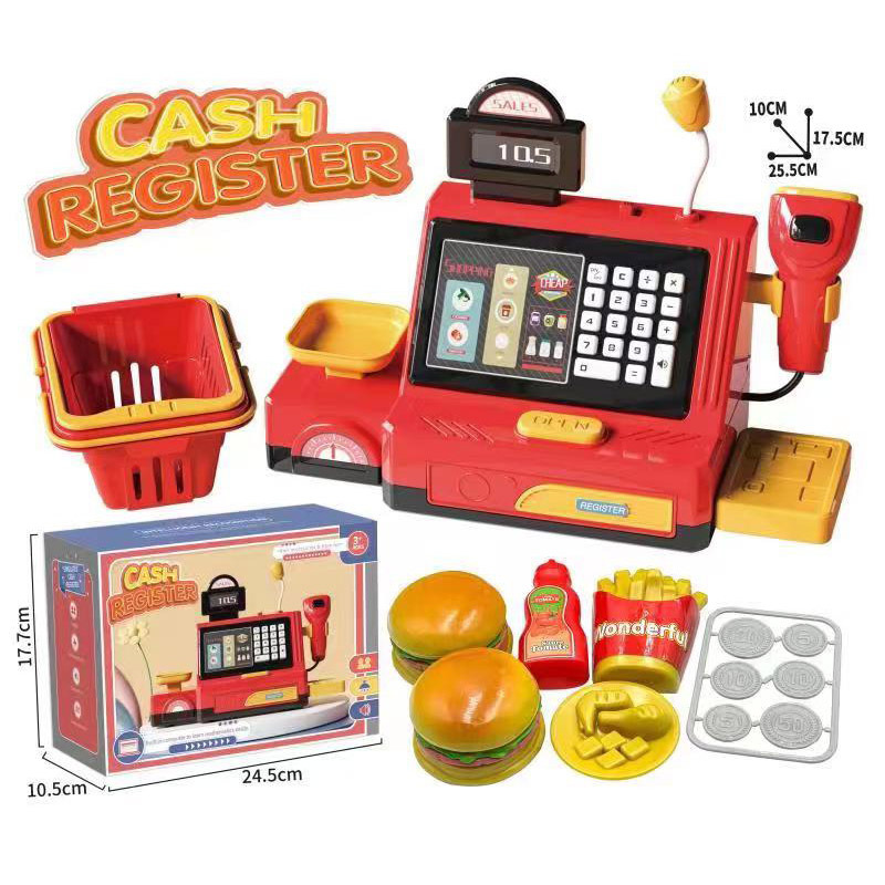 | nameOriginal | Cross-border simulation supermarket cash register suit gifts children play house hamburger barbecue lollipop cash register toys |