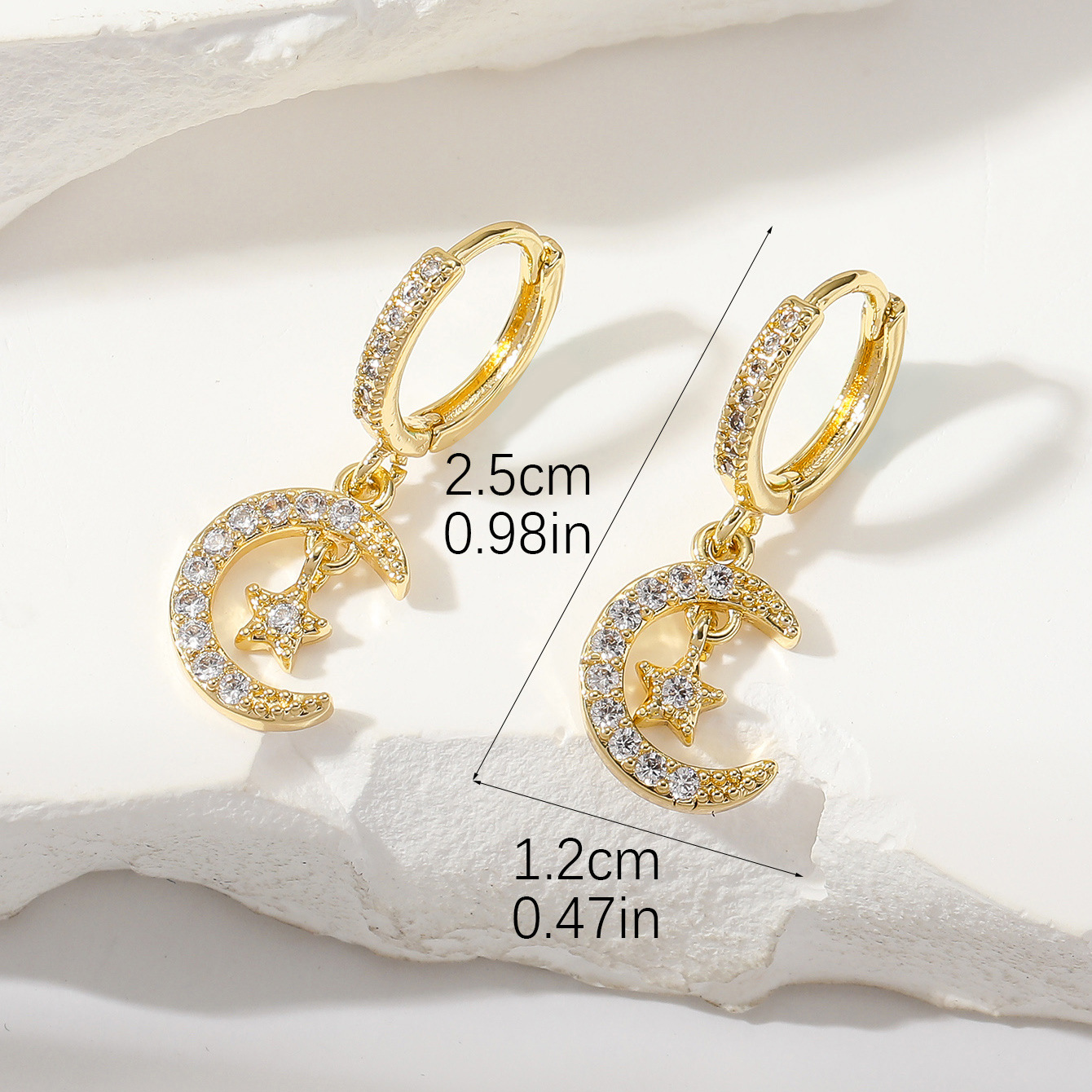 | nameOriginal | Cross-border socialite New elegant copper micro inlaid zircon star Moon ear buckle earrings for women |