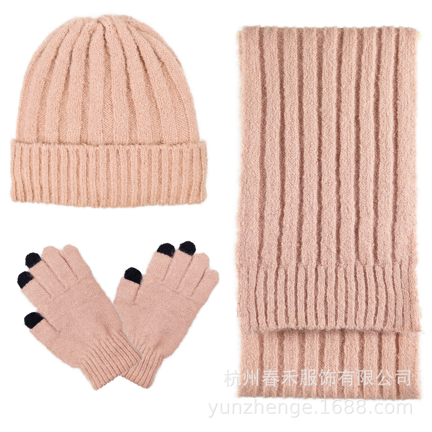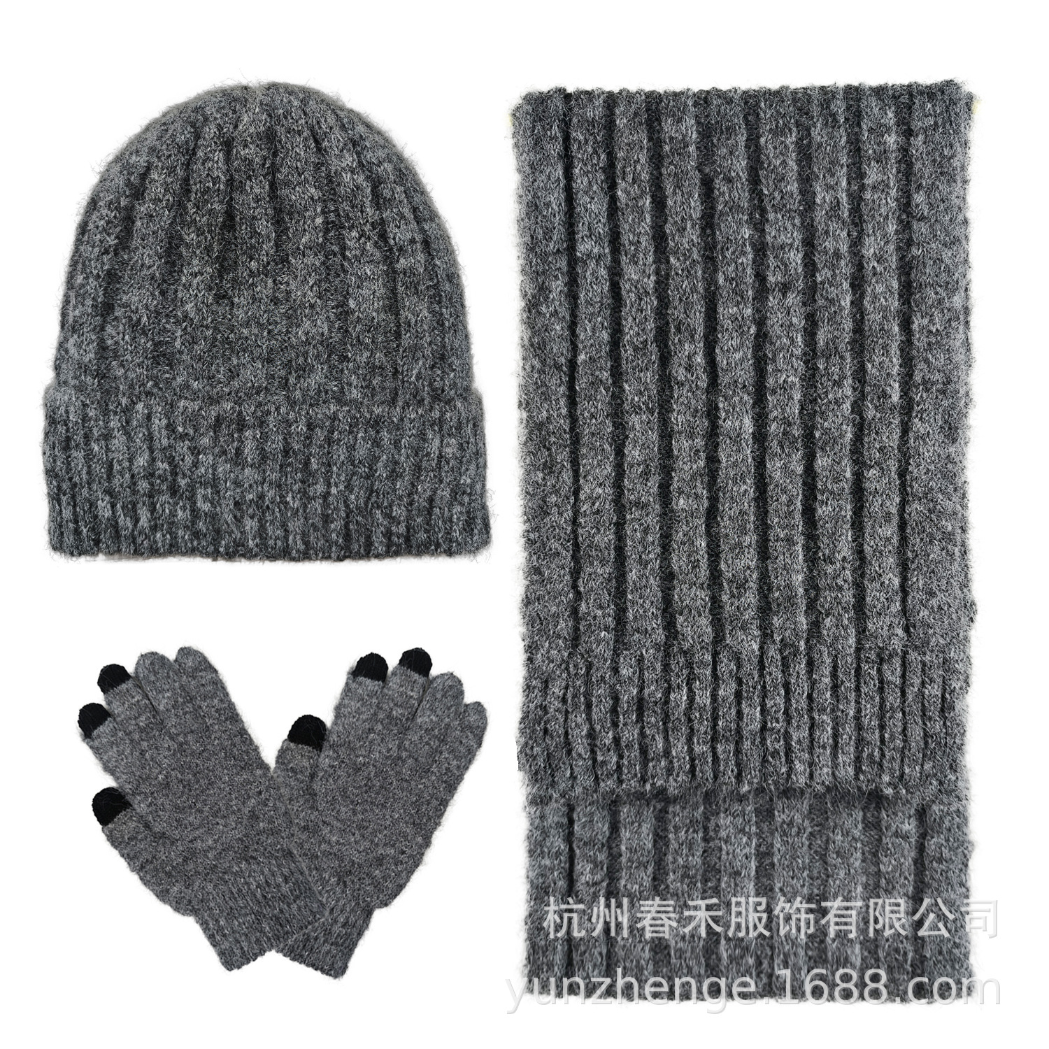 Cross-border source in stock factory direct adult men’s winter acrylic alpaca hat scarf gloves